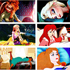 Анимированные гифки с принцессами Дисней, на которых девушки просыпаются. Кадры из 9 разных мультфильмов.