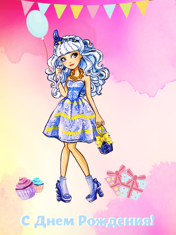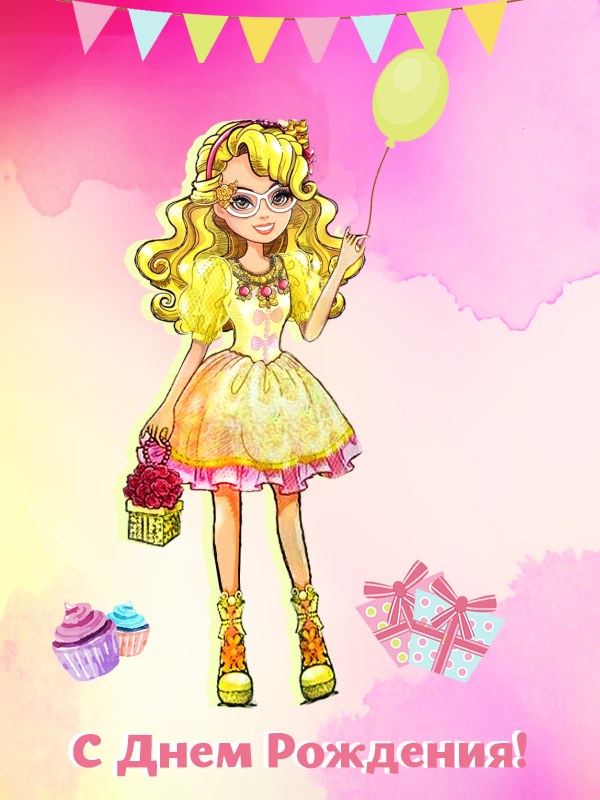 Коллекция кукол и артов с героинями Эвер Афтер Хай Birthday Ball просто идеально подходит для создания открыток ко Дню Рождения.