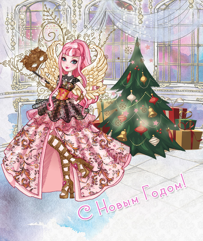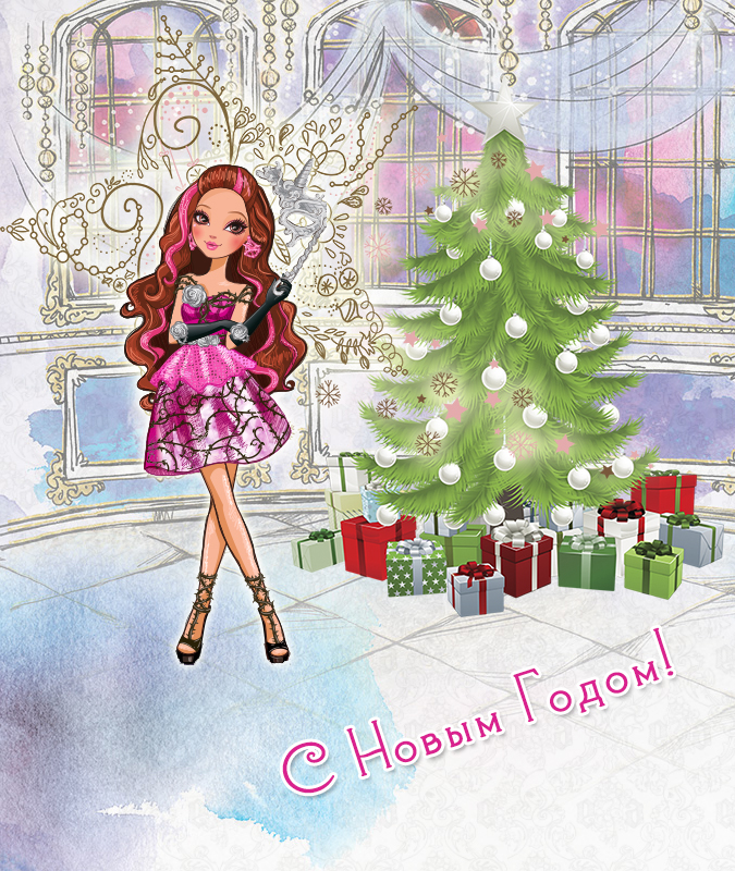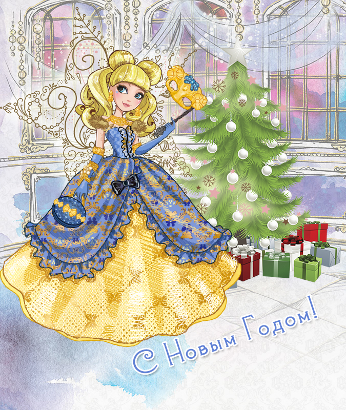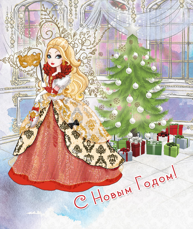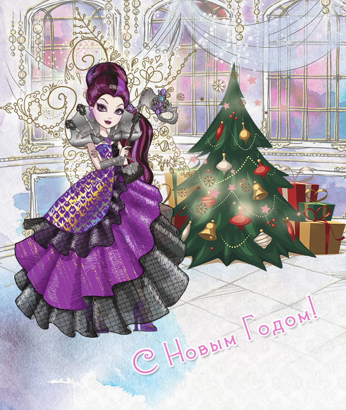Образы учениц школы Эвер Афтер Хай со дня Королевы Бала идеально подходят для новогодних открыток, поэтому эти открытки выполнены в стиле Thronecoming. И да, вероятнее всего будет еще одна порция открыток уже в другом стиле и с другим списком персонажей.