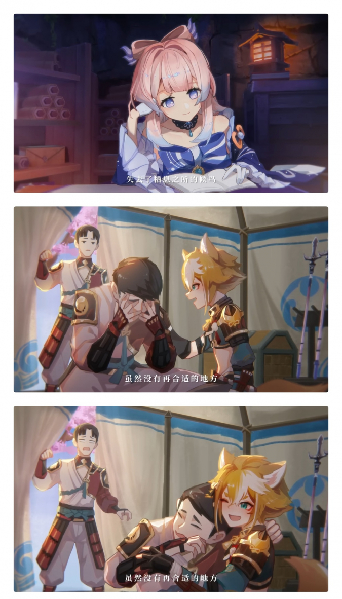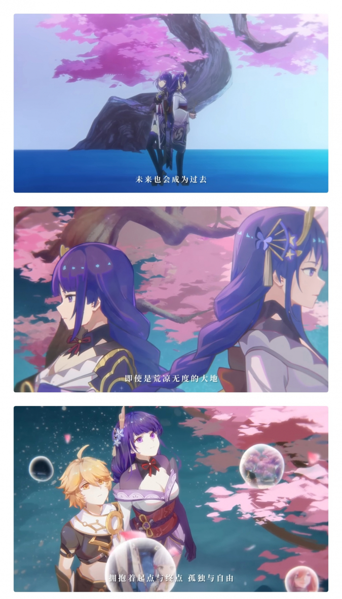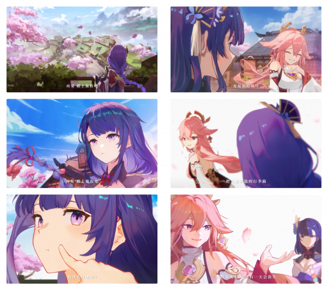 Райен, Эи, Яэ Мико, Горо, Аяка, Аято, Кадзуха, Ёимия, Тома, Итто, Сара, Ру и другие герои Инадзумы на красивейших картинках. Трогательные воспоминания о событиях, через которые успели пройти Путешественники.