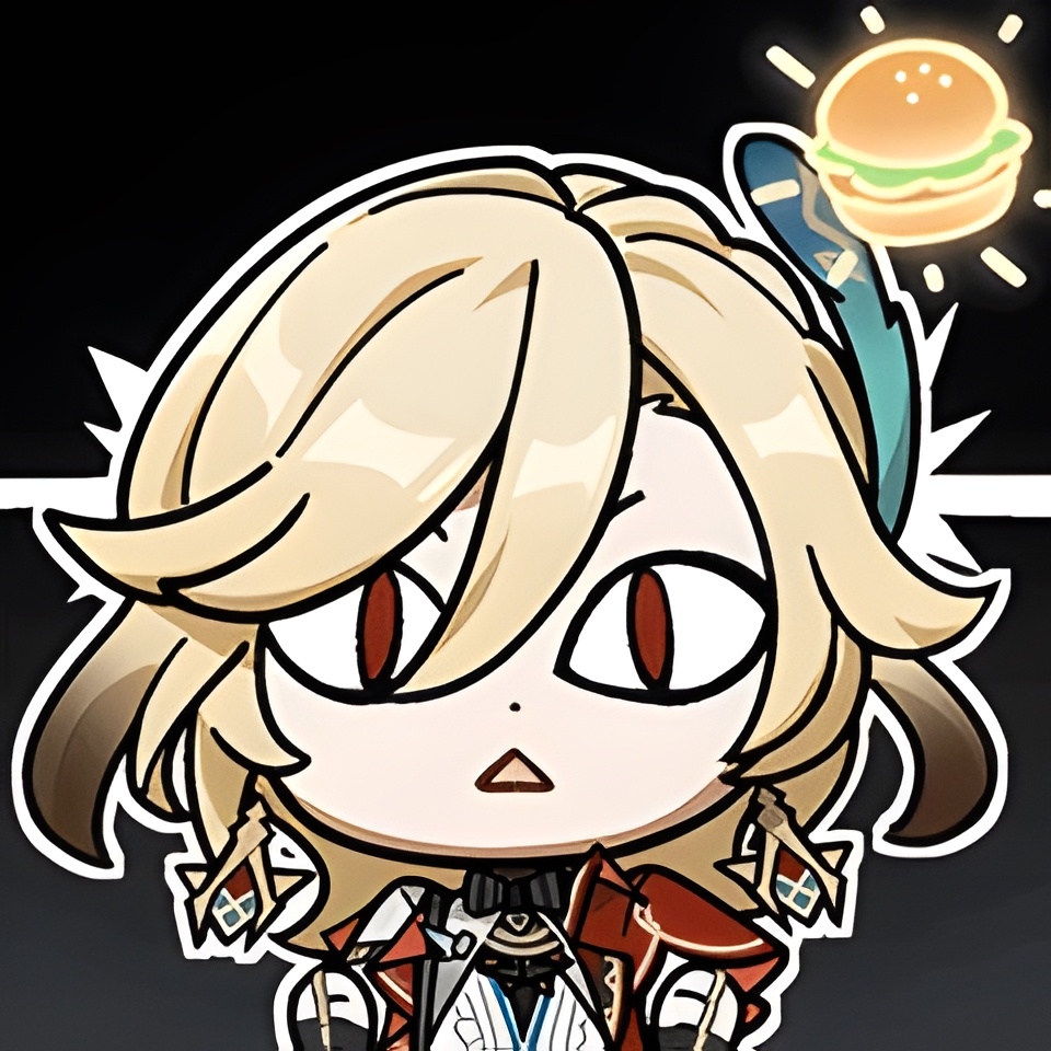 Кавех с озарением смотрит на парящий бургер — как на внезапную идею.