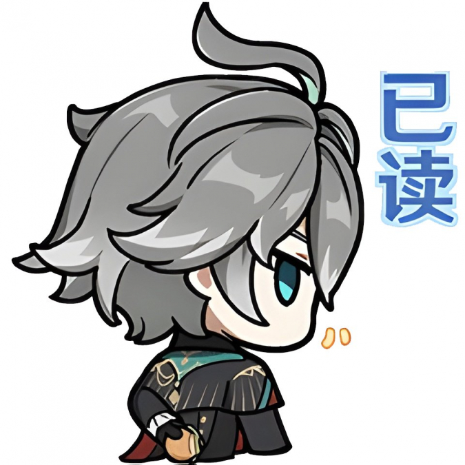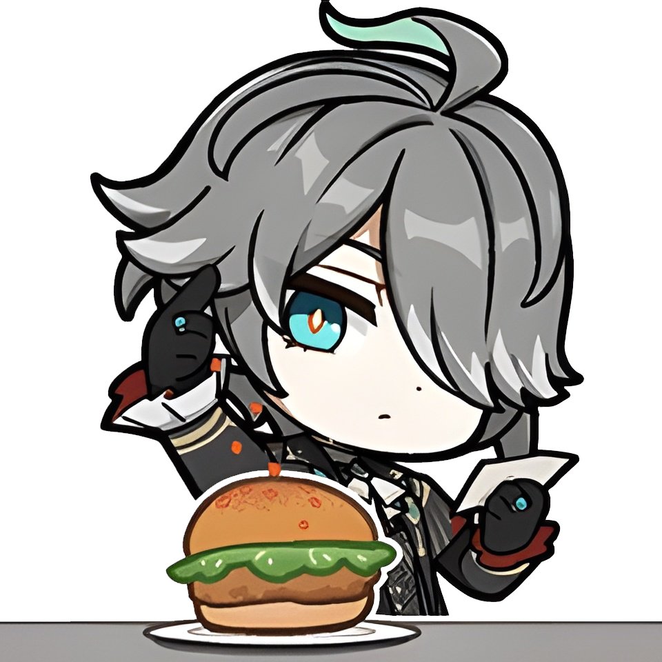 Альхайтам с бургером за спиной и надписью «Прочитано» — безэмоционально, но с намёком на сарказм.