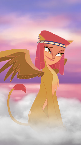 Сфига - сфинкс. Лучшая подруга Эрис. Ничто не может напугать её, кроме Цербера, трехглавого щенка Аида.