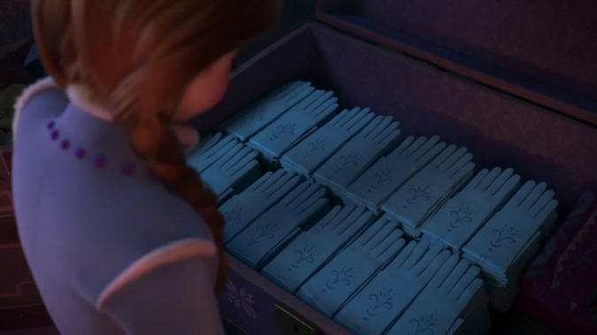 Обратите внимание на плащ, в который Эльза нарядила сэра Йоргенбьоргена. Похоже что он сделан из перчаток, которые Эльза носила в детстве и юности.
