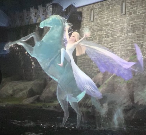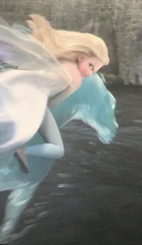 Начнем с картинок не в HD качестве. На них можно увидеть новые кадры с Эльзой в её платье "Снежной Королевы" (именно такое название оно носит на официальной продукции Дисней), скачущей верхом на Нокке.
