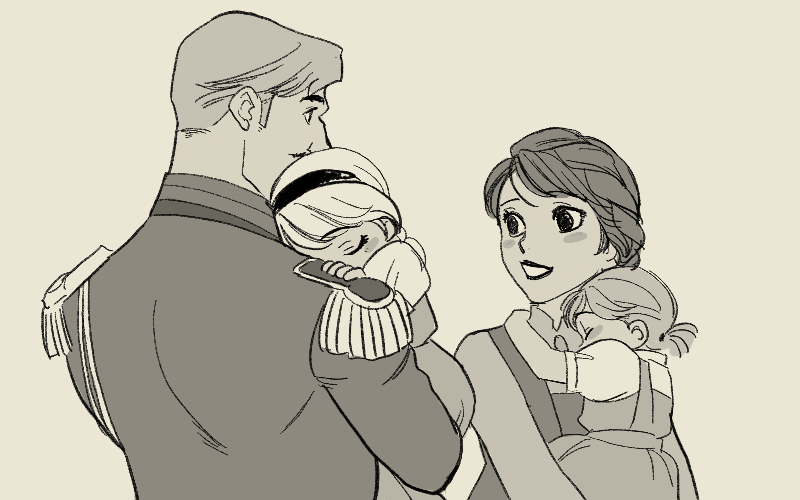Родителей Эльзы и Анны - короля Агнарра и королеву Идуну рисуют не слишком часто. И нам кажется незаслуженно. Они были так молоды когда погибли, у них такая необычная история знакомства...и так много просторов для фантазии о том, какой была их жизнь до появления Эльзы и Анны, и еще больше, какой бы она могла быть если бы они не сели на корабль. Но заслуживающих внимания артов все-таки хватает, и сегодня мы хотим познакомить вас с творчеством Kansai Kosuke.