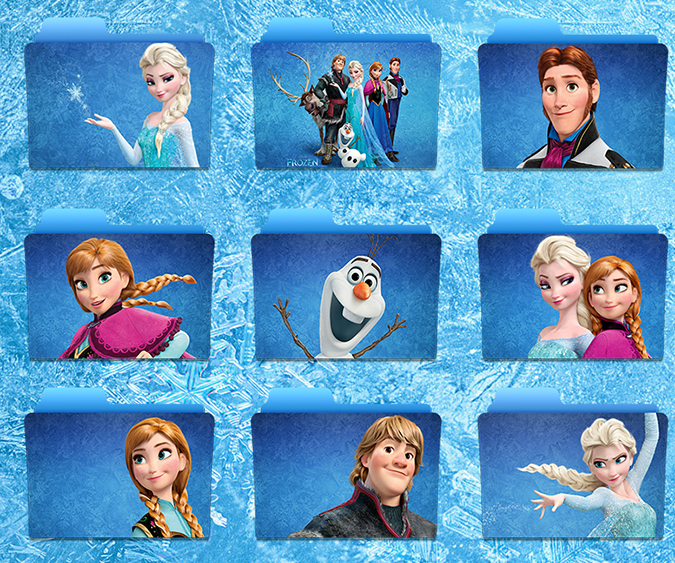 Храни файлы с рисунками, картинками, мультфильмами в папках с любимыми персонажами из мультфильма Холодное Сердце.