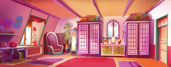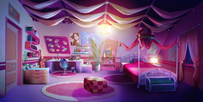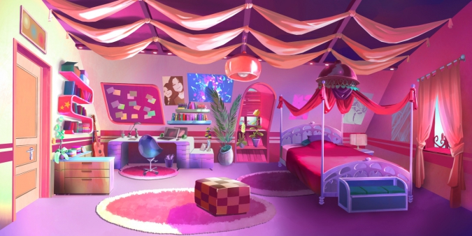 В оформлении преобладают фирменные цвета каждой из принцесс Лолирок. Все комнаты в целом похожи, ведь они находятся в одном доме, но индивидуальность им придают различные предметы, такие как коллекция плюшевых игрушек у Арианны. В комнате Талии так много книг потому что она занимает комнату, которая раньше была библиотекой.