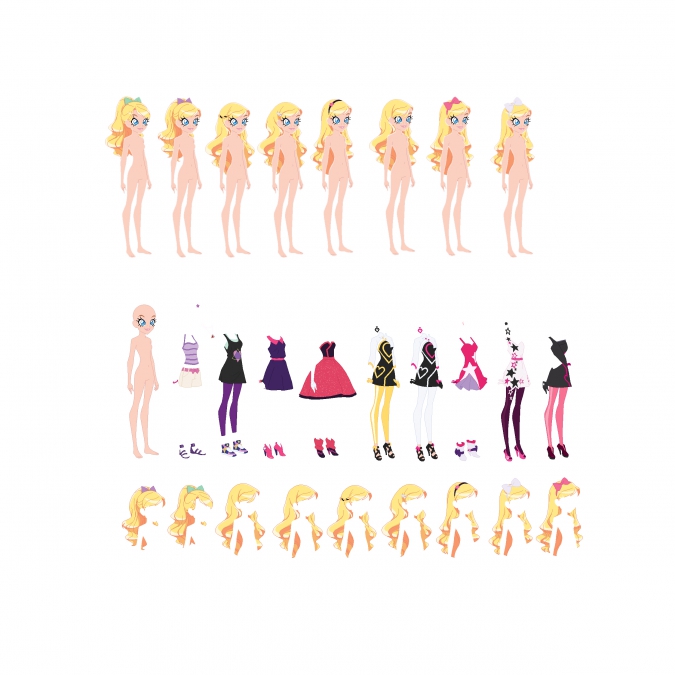 Манекен Айрис из Лолирок с различными нарядами из мультфильма
