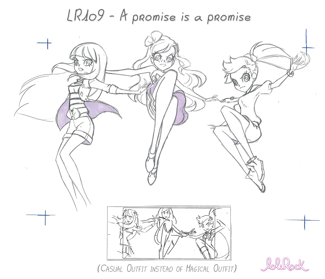 По первоначальной задумке создателей мультсериала Лолирок, у принцесс не должно было быть "оружия". Их главных оружием должны были стать их скипетры (палочки) и в мультфильме должны были происходить долгие магические баталии. Но один человек предложил разбавить их битвами с волшебным оружием, и таким образом у Айрис и Талии их скипетры стали трансформироваться в боевое оружие волшебных принцесс. Что же касается Арианы, то дизайнеры решили, что у нее и так есть лента, к тому же сражение на мечах или другим оружием не совсем подходит её характеру.