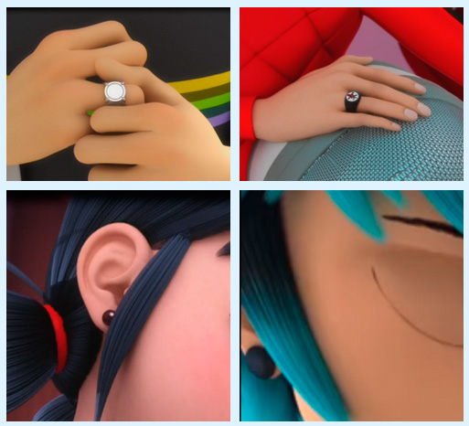 Интересная деталь, позволяющая опять же провести параллели с Кагами. Важная деталь в её внешности - кольцо, напоминающее талисман чудес Супер-Кота. А у Луки это сережка...да, да как талисман Леди Баг.