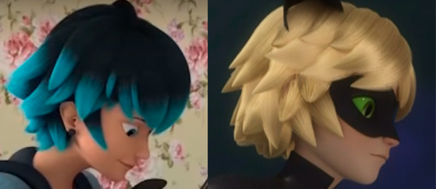 Прическа Луки чем-то очень напоминает прическу Супер-Кота. И давайте вспомним, что Эдриан в свое время принял Кагами за Леди Баг из-за сходства цвета их волос.