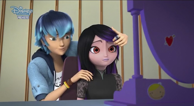 Милый момент с Джулекой с двумя открытыми глазами, без челки на лице, и с Лукой поддерживающим её.