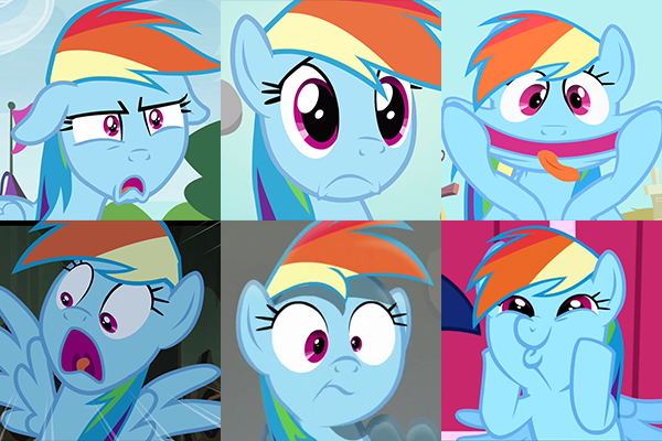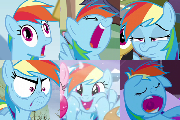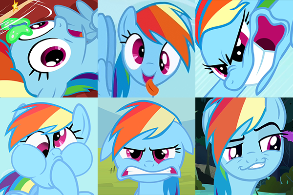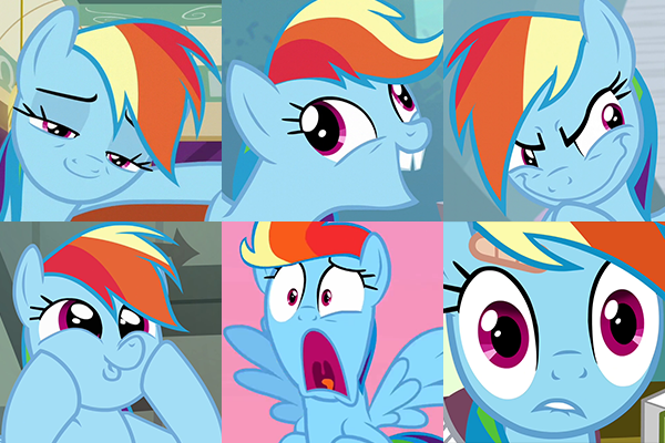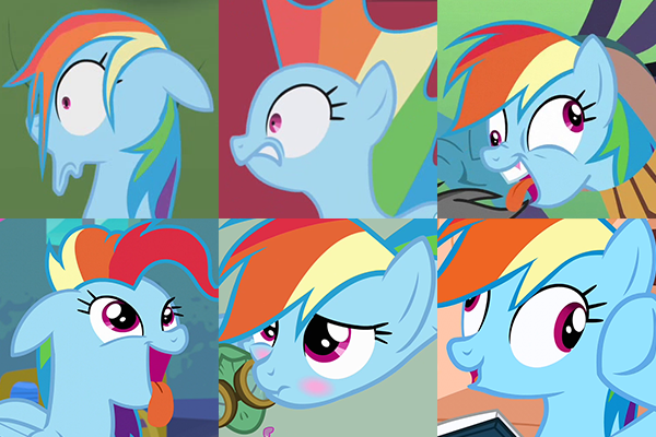 Пони в мультфильме "Дружба это Чудо" порой делают очень смешные лица. И вот больше десятка примеров с пони Радугой.