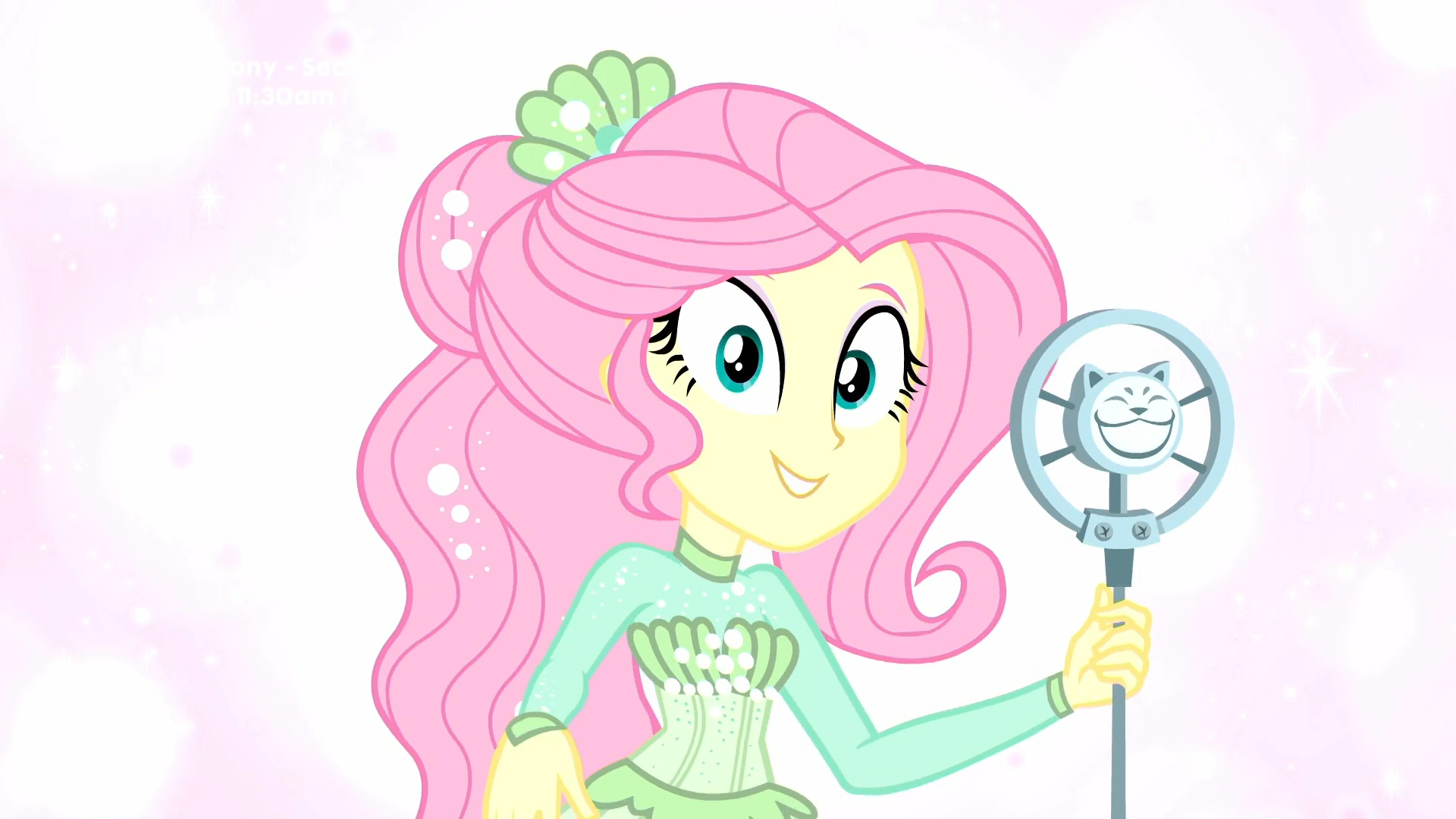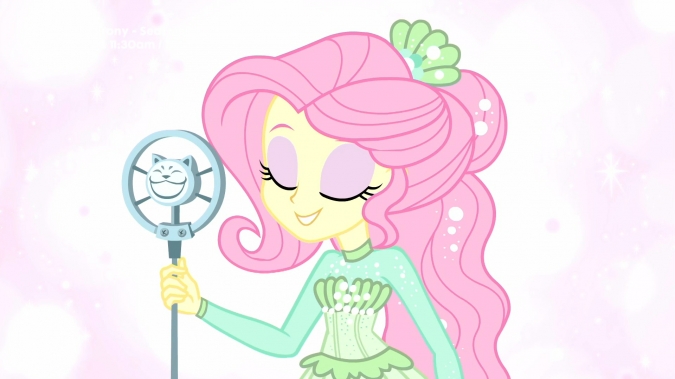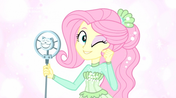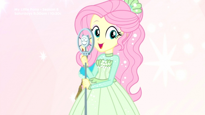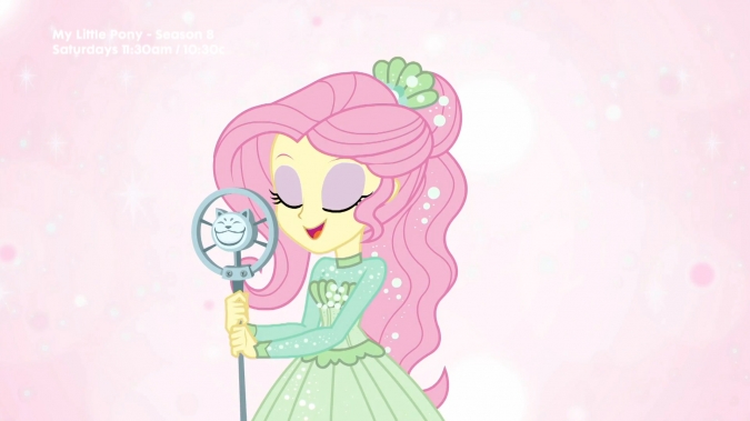 Как же ей идут эти нежные оттенки зеленого. И эти жемчужинки вплетенные в детали наряда и прическу! Флаттершай словно превратилась в современную русалочку.