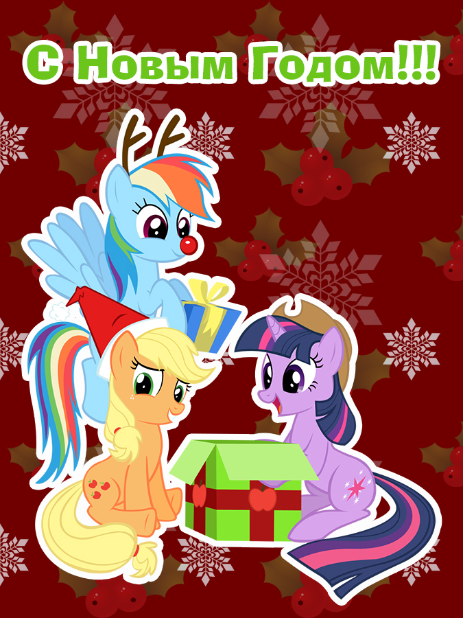 Новогодние открытки с поняшками из мультсериала Дружба это Чудо