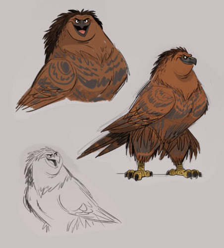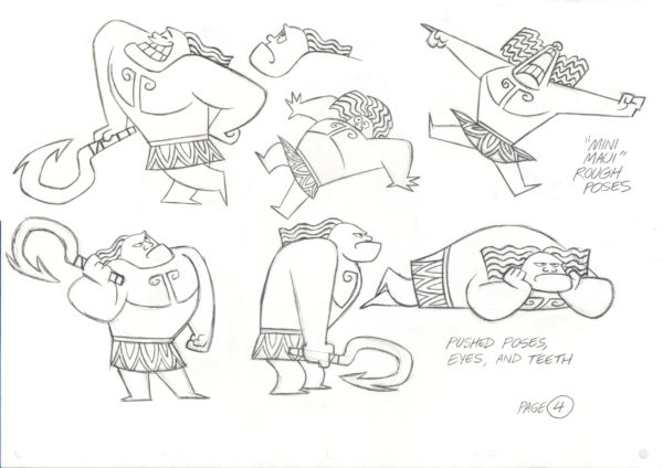 Концепт арты с Мауи, его мини версией с татуировок и Мауи в обличье орла.