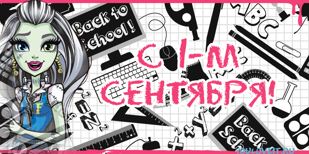 Открытки с 1 сентября и героинями Монстер Хай от сайта YouLoveIt.ru