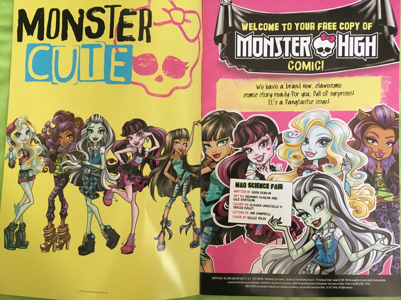 Не так давно мы писали про день бесплатных комиксов в США. И вот, этот день прошел и на руках у многих ребят оказались экземпляры первого комикса с героинями Монстер Хай. Конечно, комиксы как таковые мы уже видели в журналах, но впервые они были изданы в формате комикса без журнала. Этот комикс нарисован по мотивам мультфильма "Добро Пожаловать в Школу Монстров" и посвящен проходящей в школе научной ярмарке.