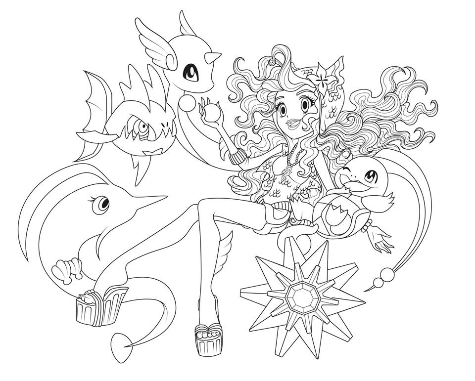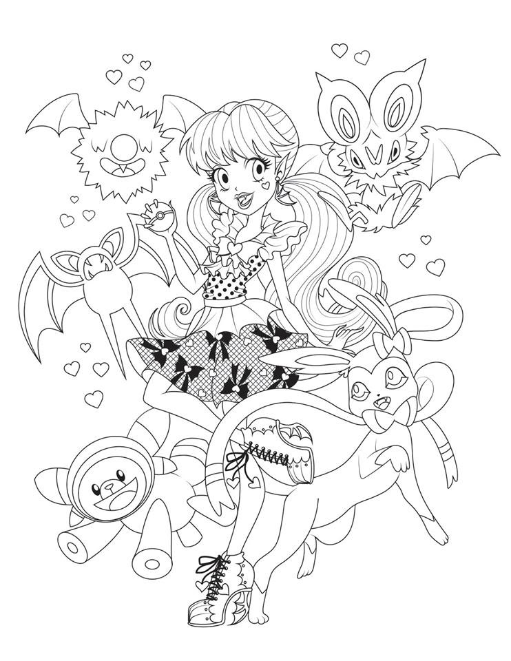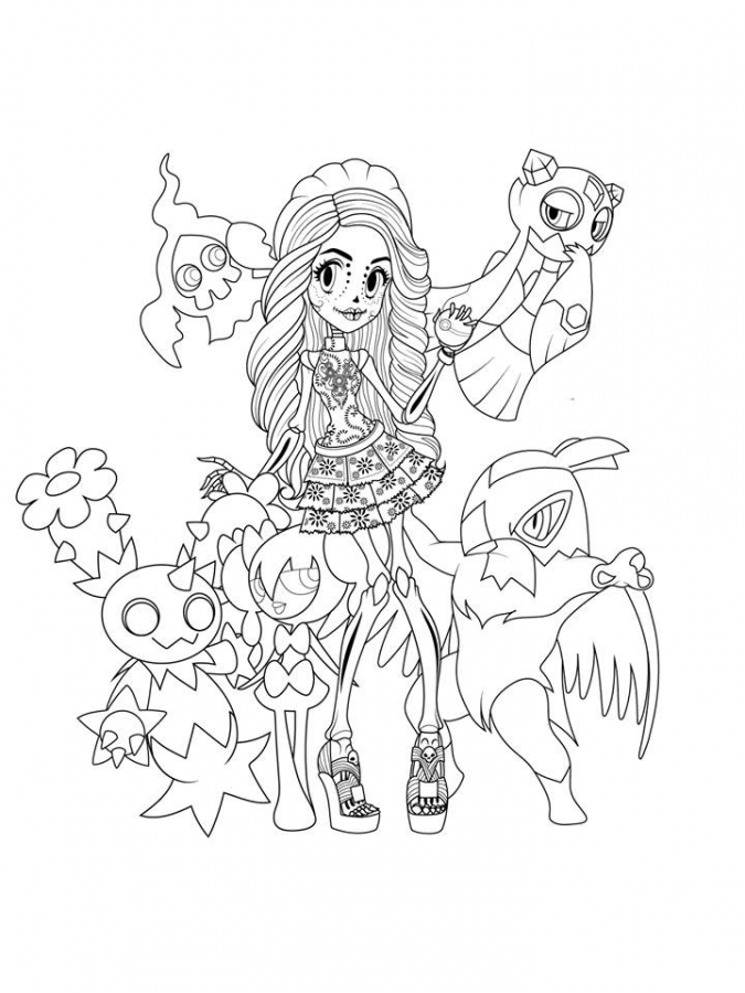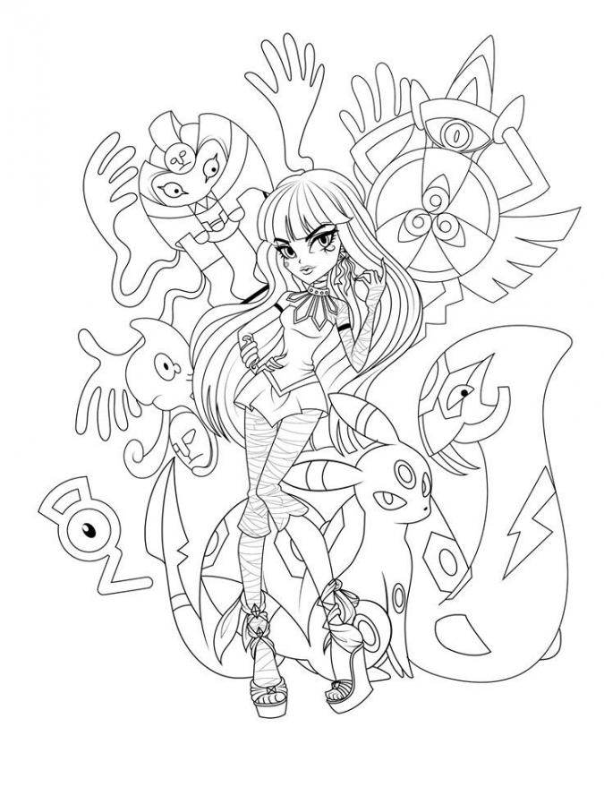 Раскраски с героинями Монстер Хай в роли тренеров покемонов