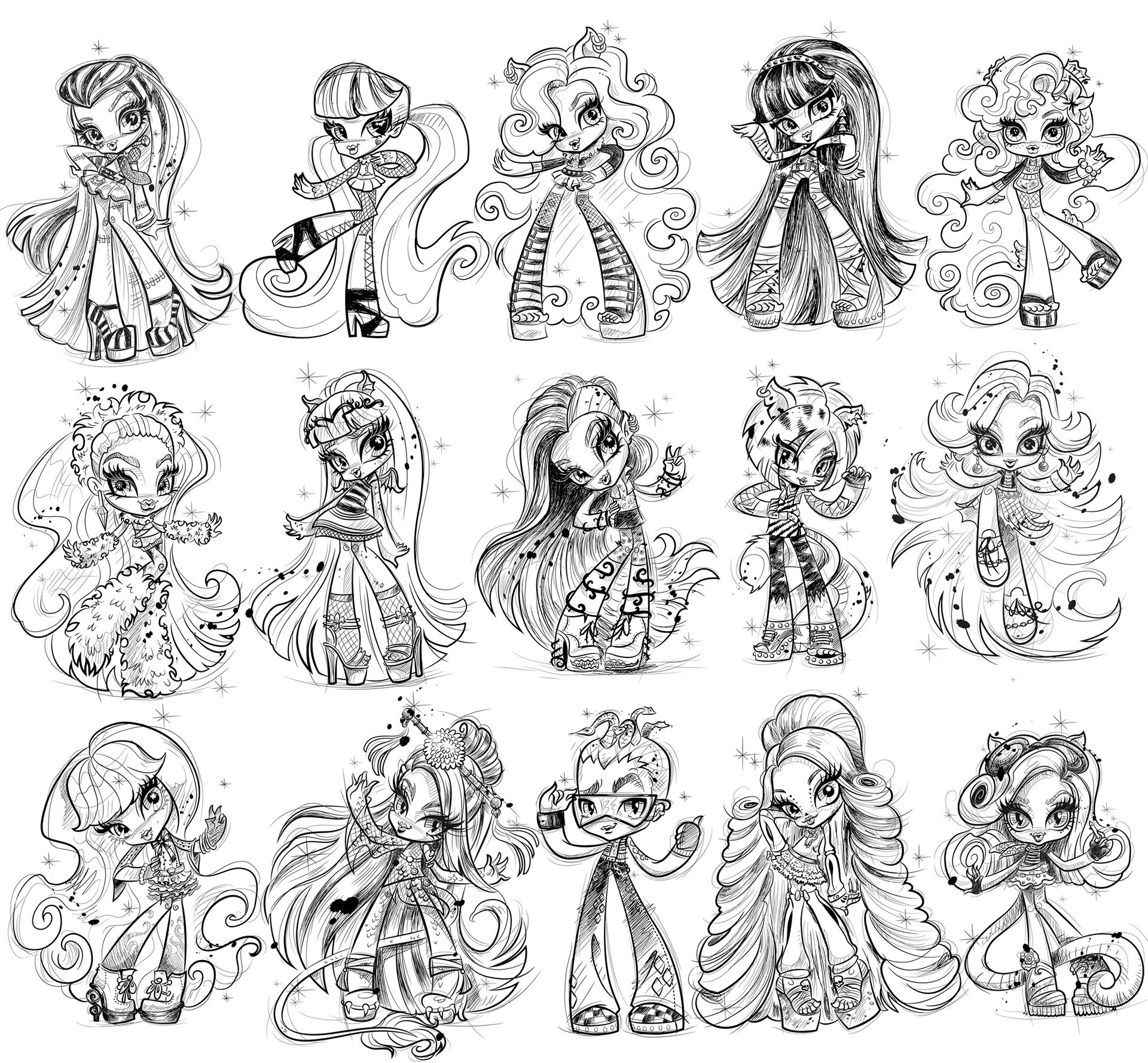 Все картинки из этой новости - официальные концепт арты виниловых куколок Монстр Хай. Нарисовал их, уже знакомый многим поклонникам мира монстряшек, художник Дарко Джорджевич. И эти рисунки представляют собой и отличный пример официальных артов Монстер Хай в вашу коллекцию, и картинки для аватарок, и красивые картинки для срисовывания.
