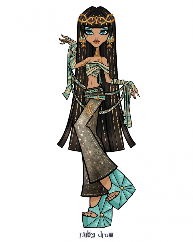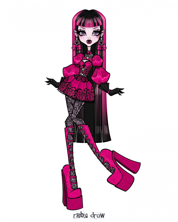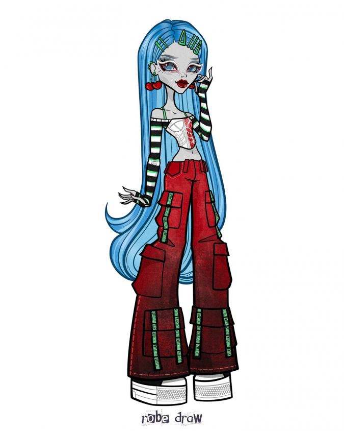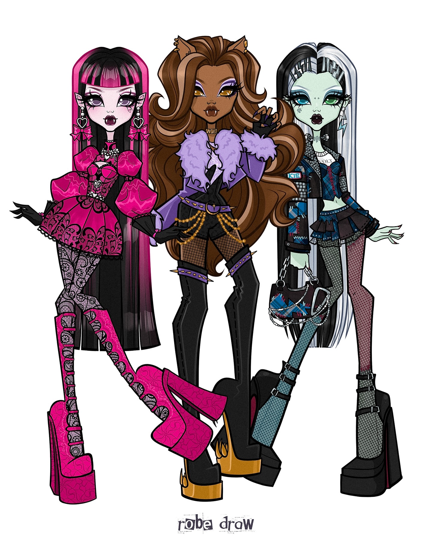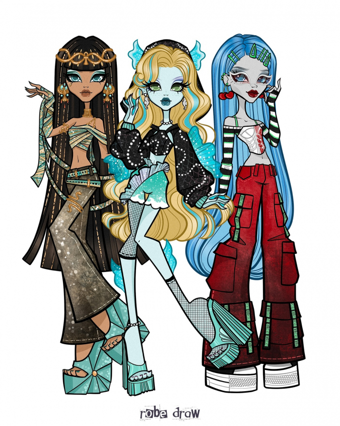 На артах представлены персонажи Monster High в стилизованной, модной интерпретации от @Robe.draw. Автор сохранил узнаваемые черты героинь — такие как палитра кожи, элементы причесок и характерные детали одежды — но переработал их в выразительном, современном графическом стиле. Образы дополнены ярко выраженными силуэтами, акцентами на обувь на высокой платформе и подчёркнутыми текстурами тканей. Стиль рисунка сочетает элементы модной иллюстрации и мультяшной выразительности, с чёткими контурами и насыщенной цветовой гаммой. Особое внимание уделено аксессуарам и макияжу, что придаёт образам дополнительную стилистическую глубину.