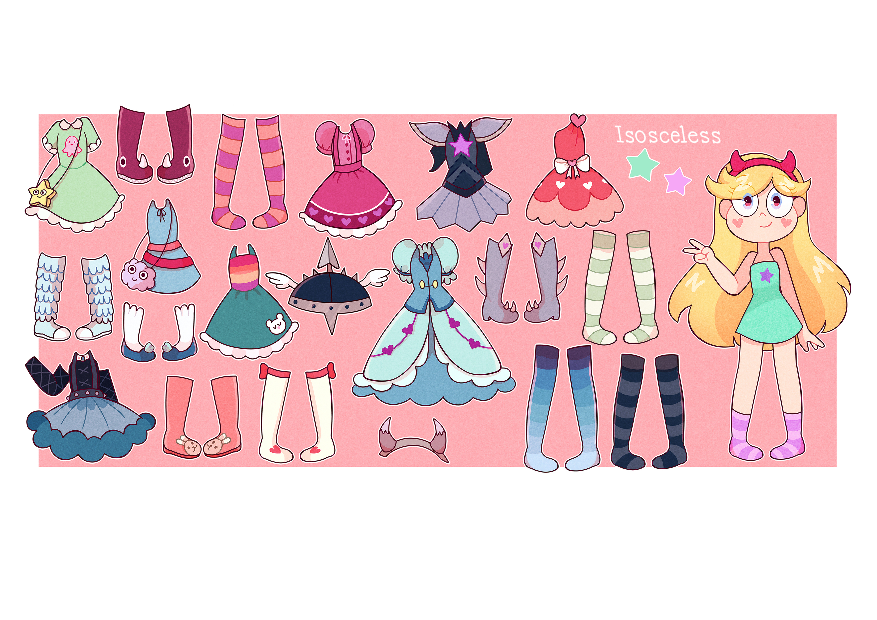 Для любителей мультсериала Star Vs The Forces Of Evil - Звёздная Принцесса и Силы Зла мы нашли замечательную распечатку в виде бумажной куклы Звёздочки (Стар) с нарядами из первого сезона. Весь гардероб Звёздной Принцессы (из 1 сезона) на одной картинке.