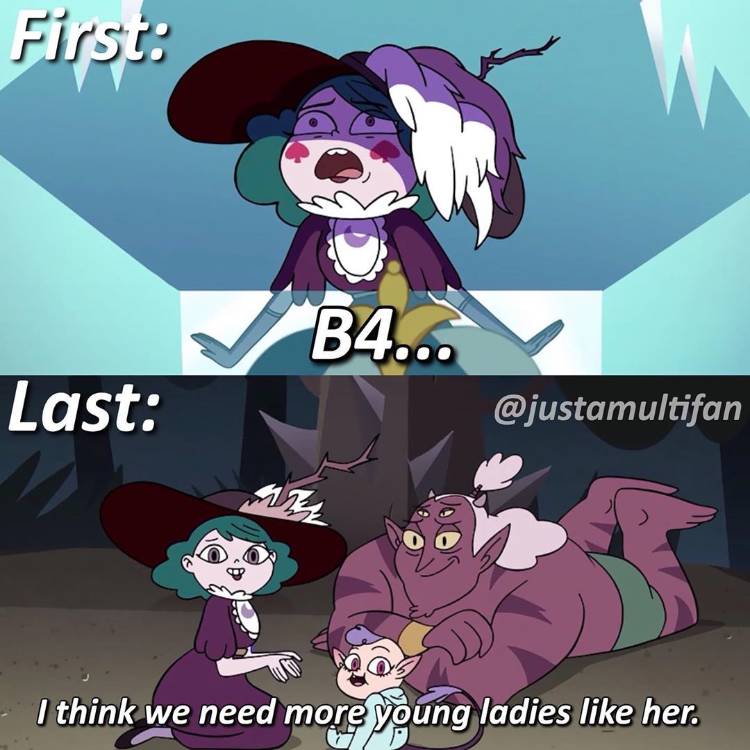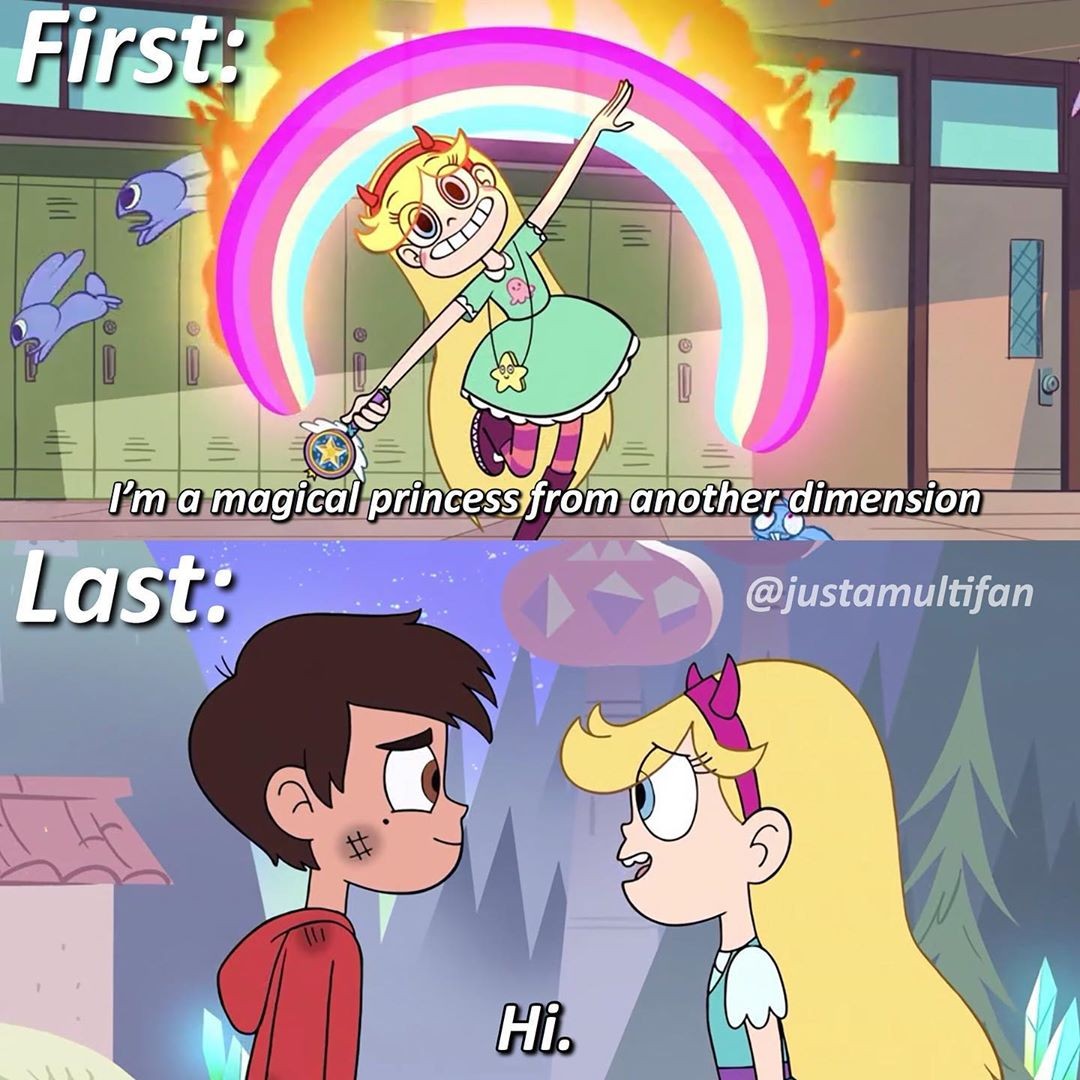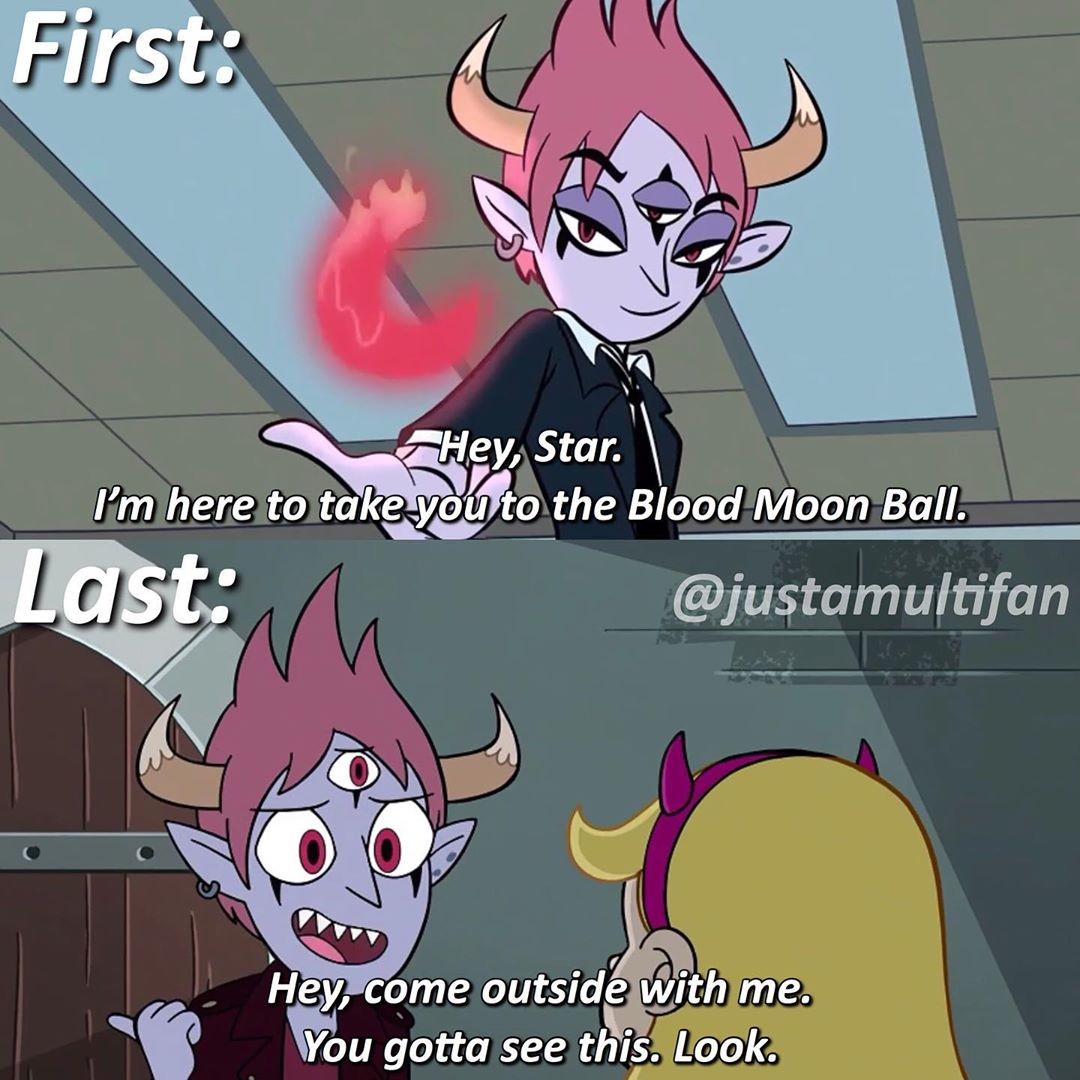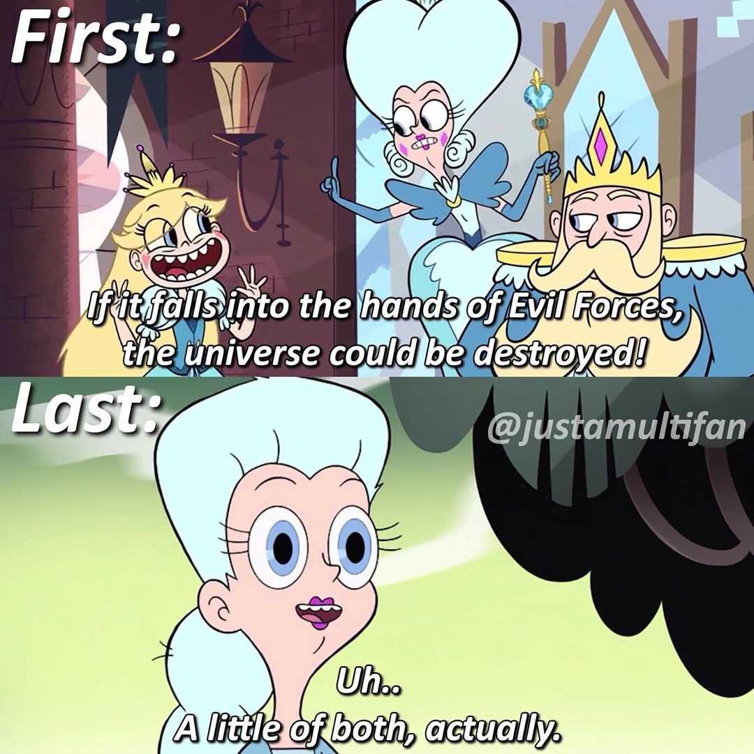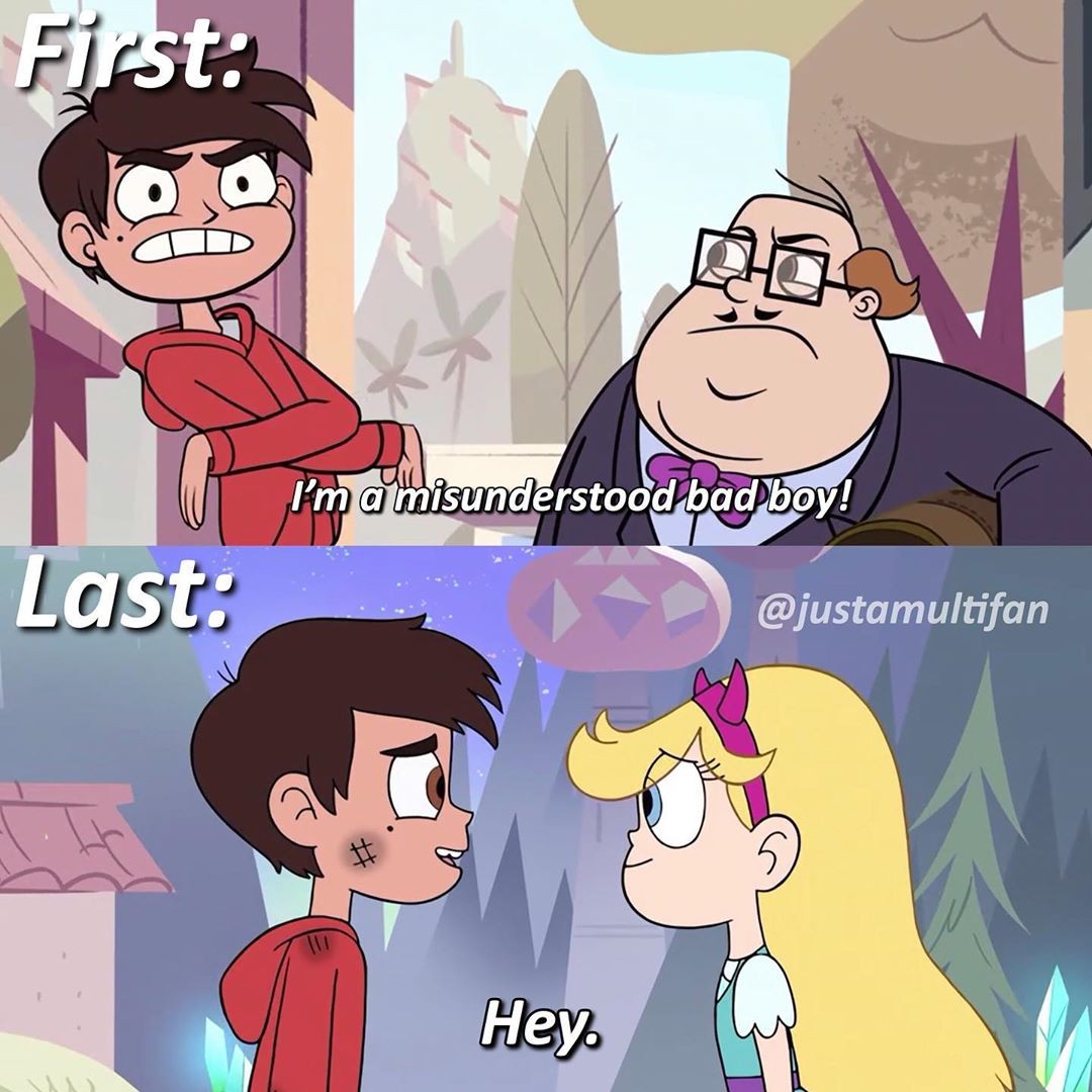Внимание, спойлеры! В этой новости собраны картинки с главными героями мультсериала «Стар против сил зла» в их первой и последней серии. Первое и последнее появление любимых героев.