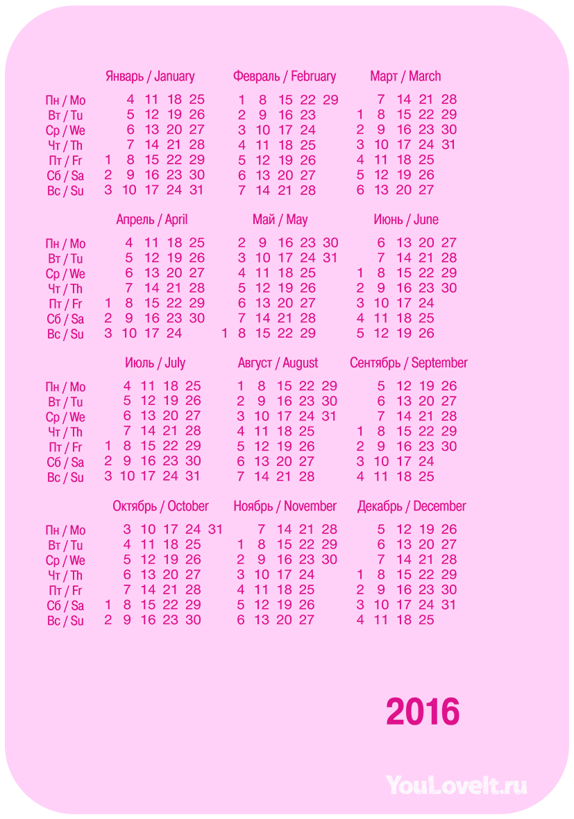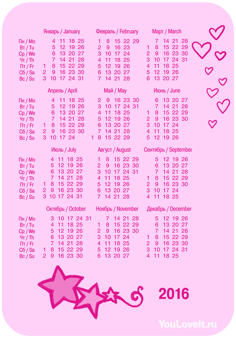 Детали календарика мы публикуем в формате больших отдельных картинок и готовые картинки для распечатки на формате А4.