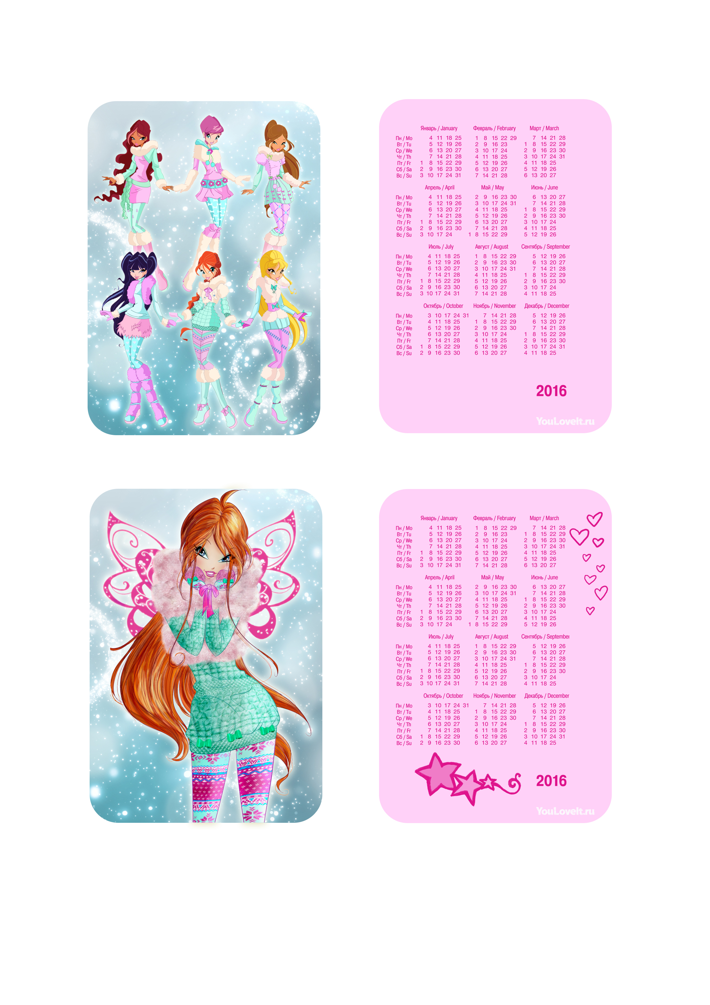 Сайт YouLoveIt.ru начинает публиковать новогодние сюрпризы. И первый из них эти карманные календарики на 2016 год с феями Винкс. Мы еще не делали календари такого формата, надеемся они вам понравятся и пригодятся.