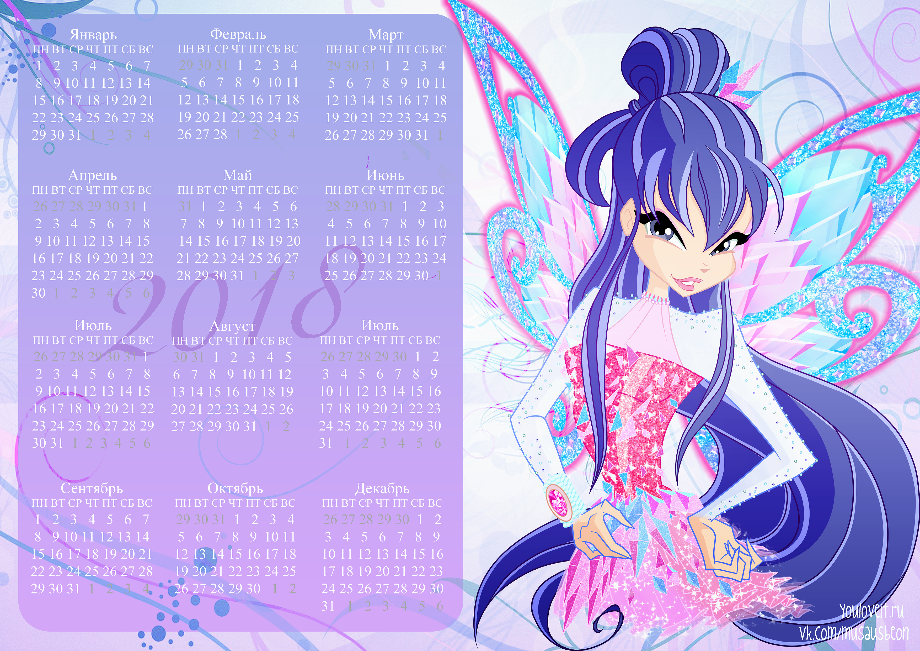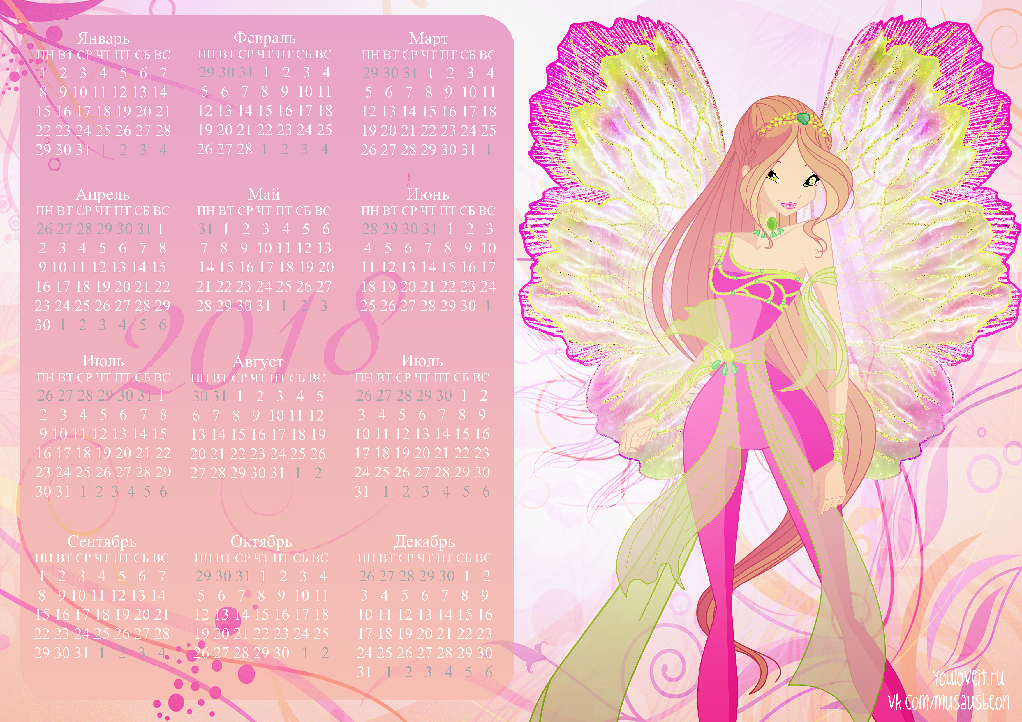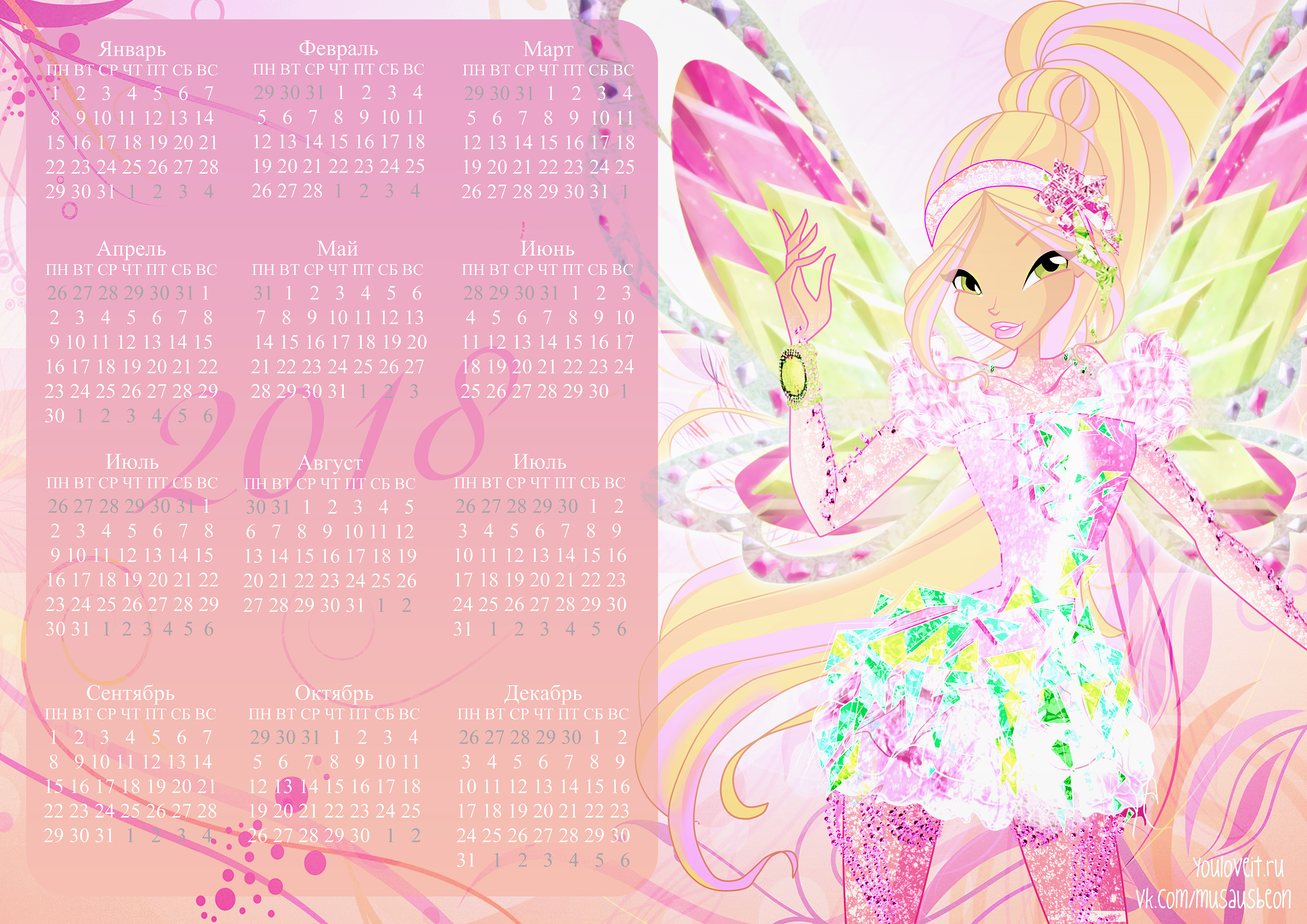 Календари с Винкс на 2018 год