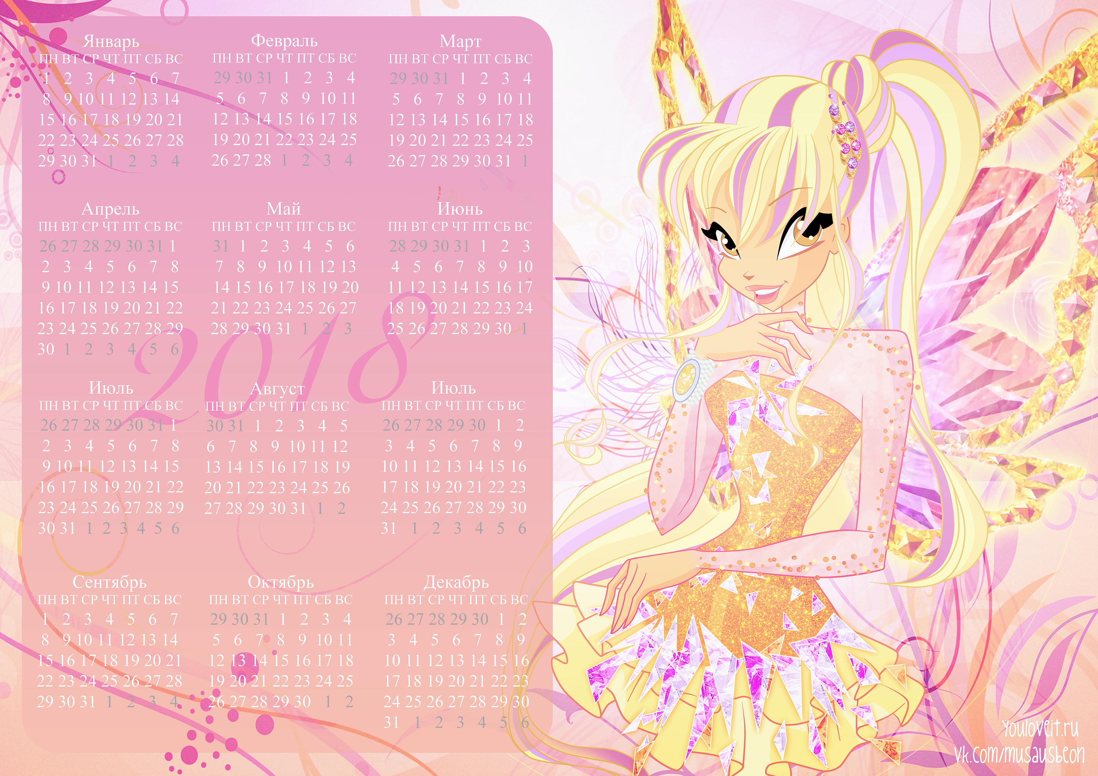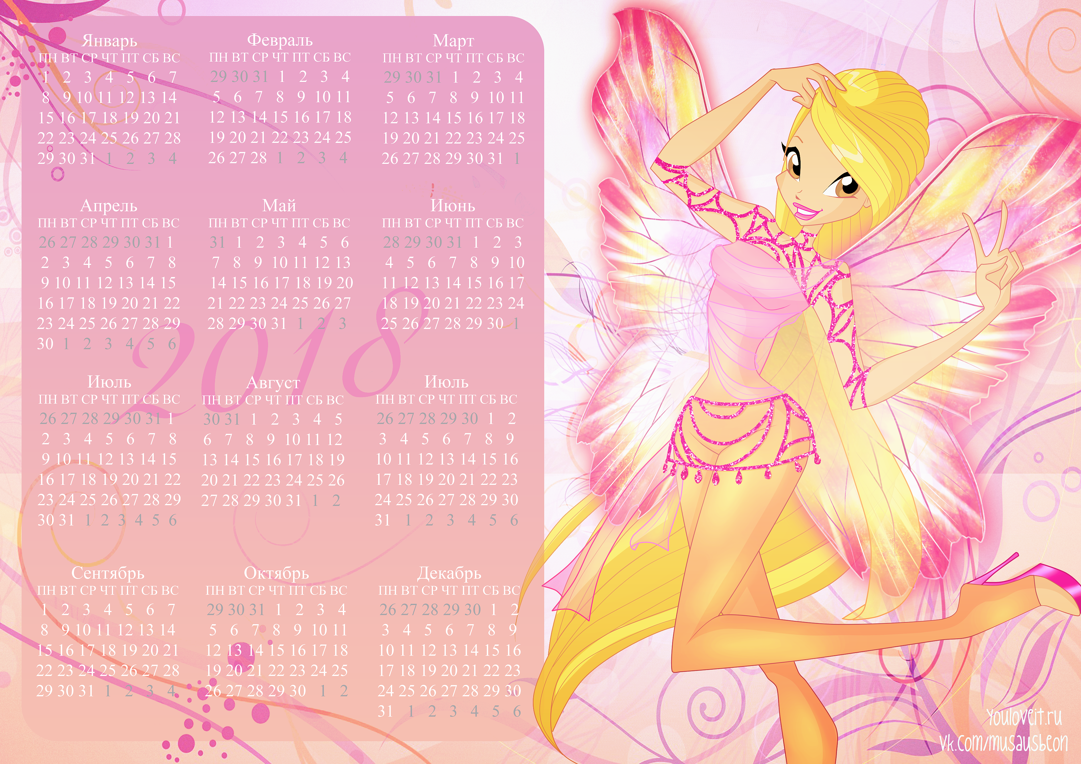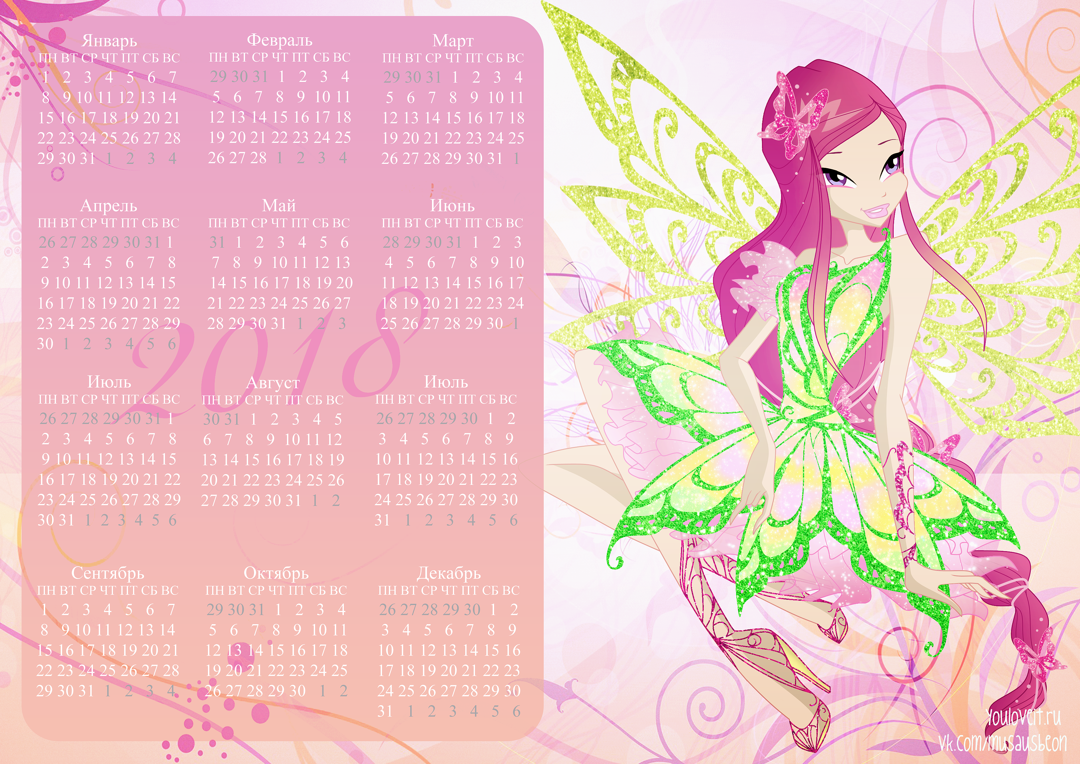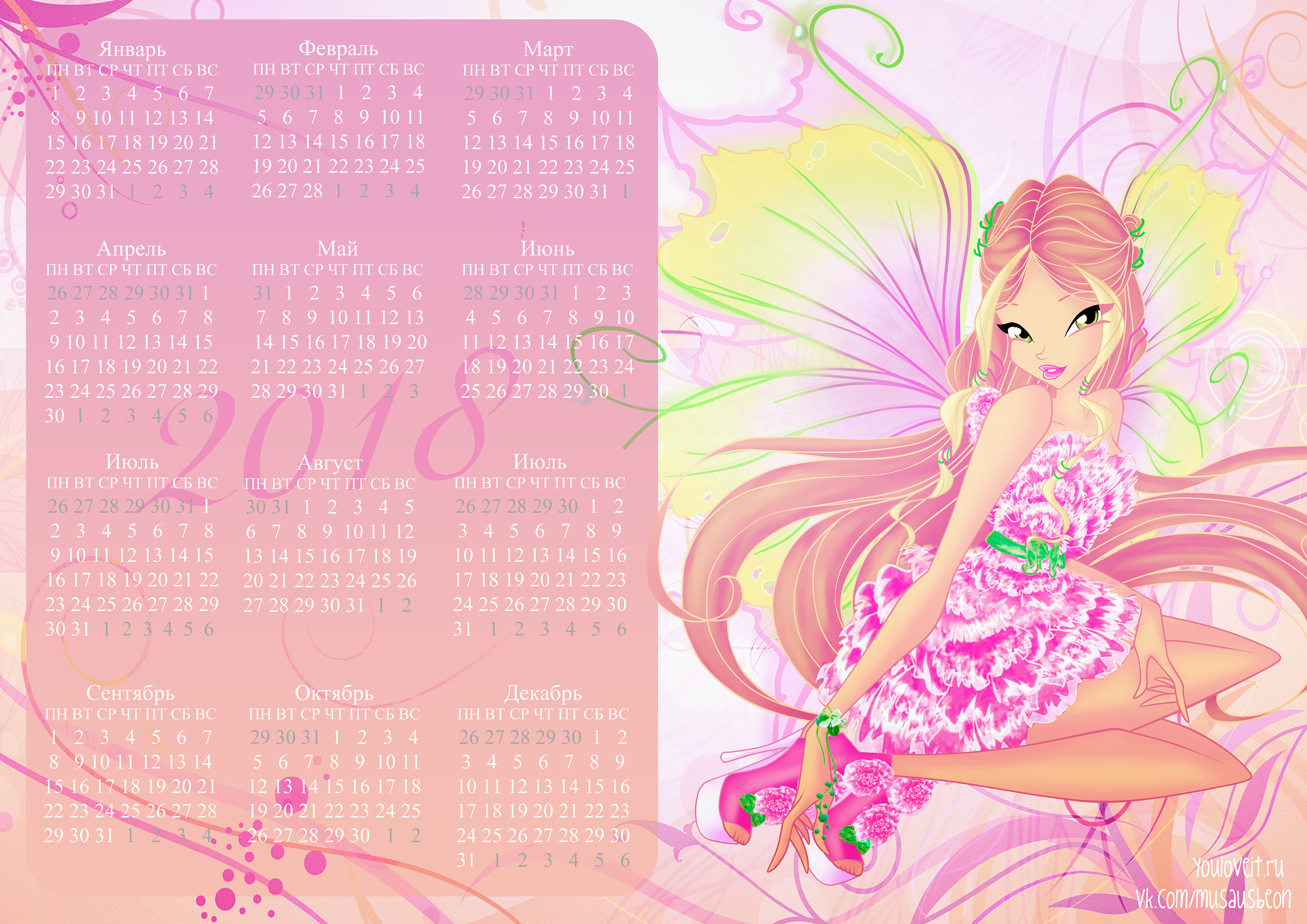 Календари с Винкс на 2018 год