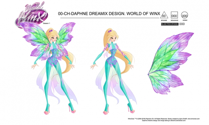 Дизайны превращений для феи Дафны из 4, 8 сезона и Мира Винкс от Bloom2