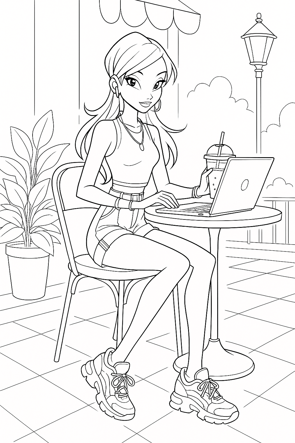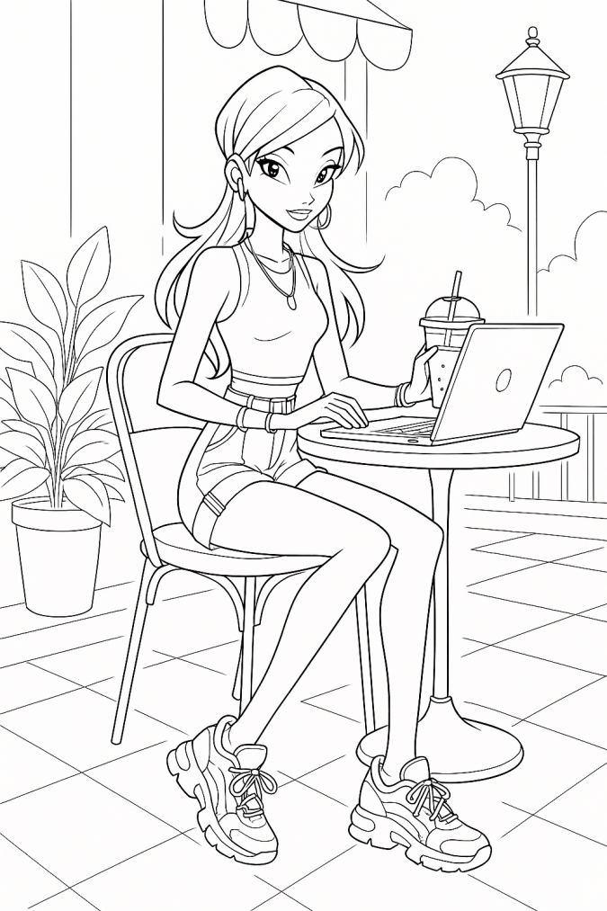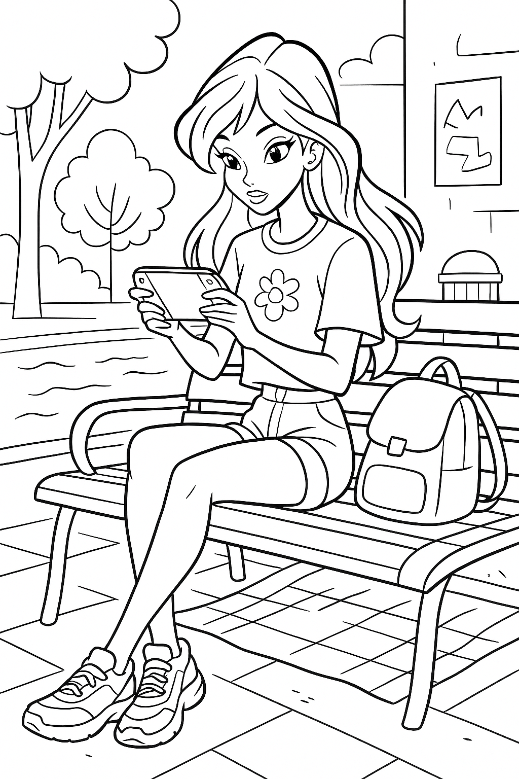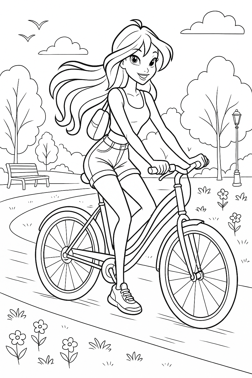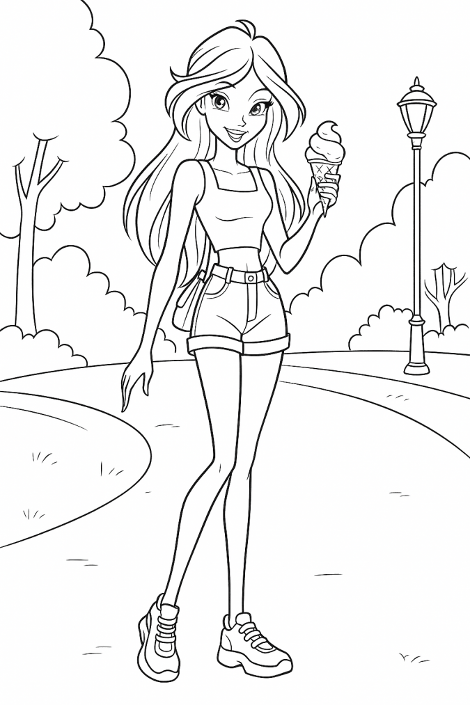 В этой подборке собраны раскраски на тему лета, вдохновлённые образами девушек из мира Winx Club. Здесь — не волшебные сражения, а повседневные моменты, знакомые каждому: поездки на велосипеде, отдых на пляже с книгой, прогулки по парку, поездка в поезде, арбуз у речки или просто день в городе с телефоном в руках.