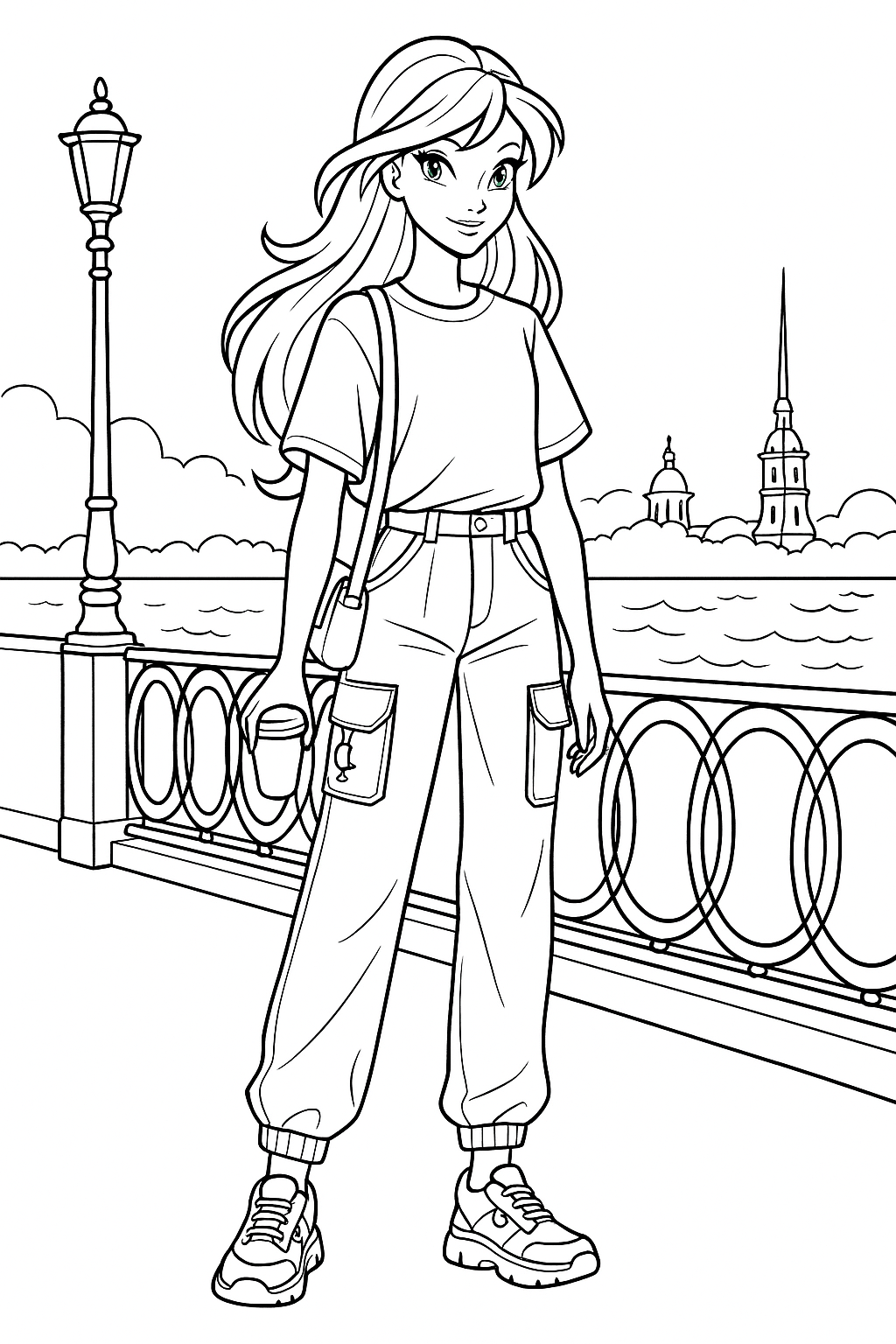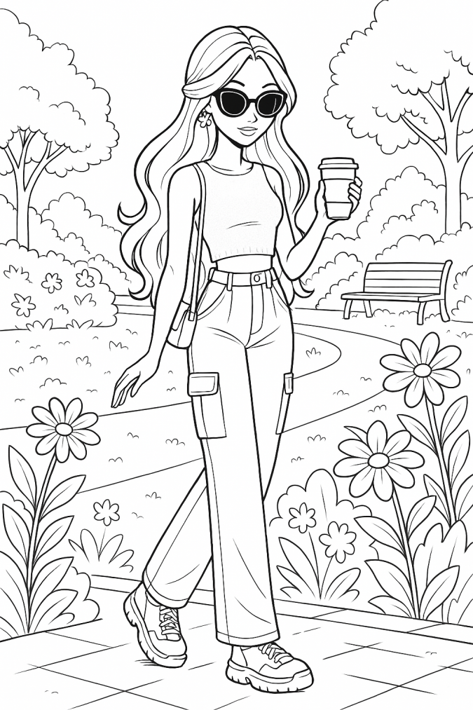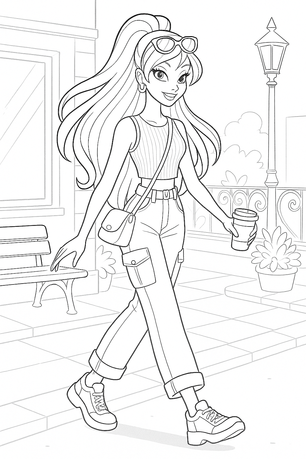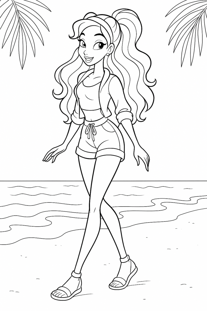 Эти раскраски подойдут тем, кто любит героинь в духе Винкс, интересуется модой, летней атмосферой и просто хочет немного уюта и творчества в жаркий день. Здесь можно найти сцены из лета в городе, на речке или на пляже — такие, в которых легко представить себя или подругу.
