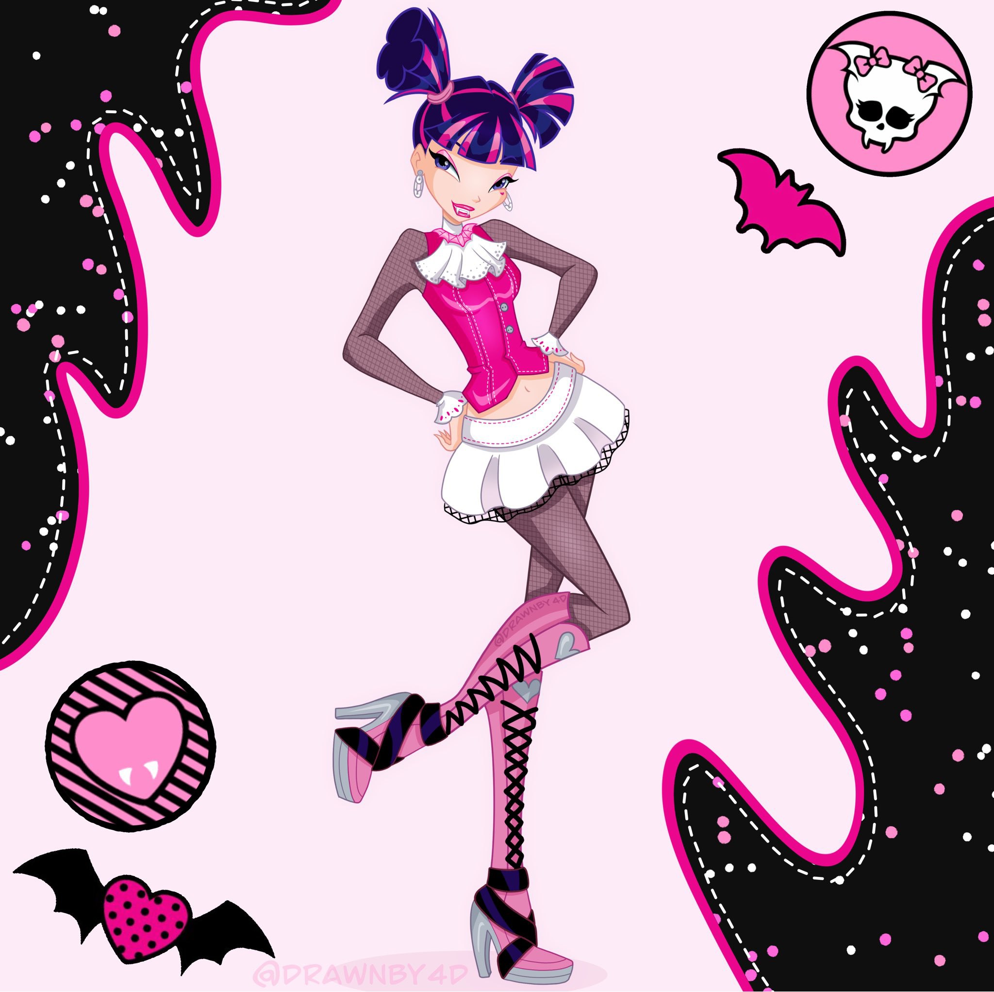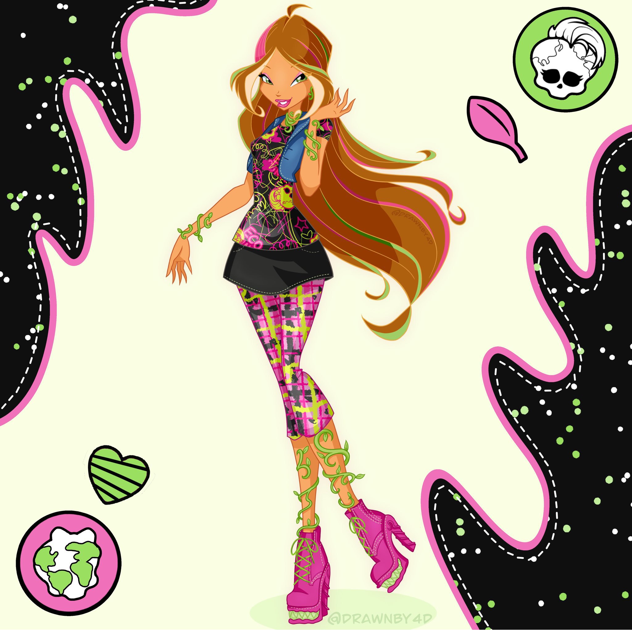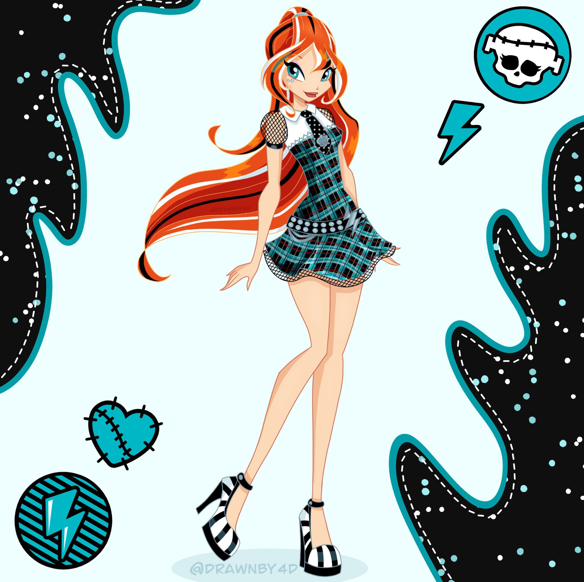 Художник под ником drawn by 4d переодел Флору, Блум, Стеллу и других героинь Винкс в наряды учениц Школы Монстров. Получилось интересно и симпатично. При этом автор пытался подобрать каждой из Винкс подходящую ей по характеру монстряшку, или хотя бы имеющую с ней общие интересы и увлечения.