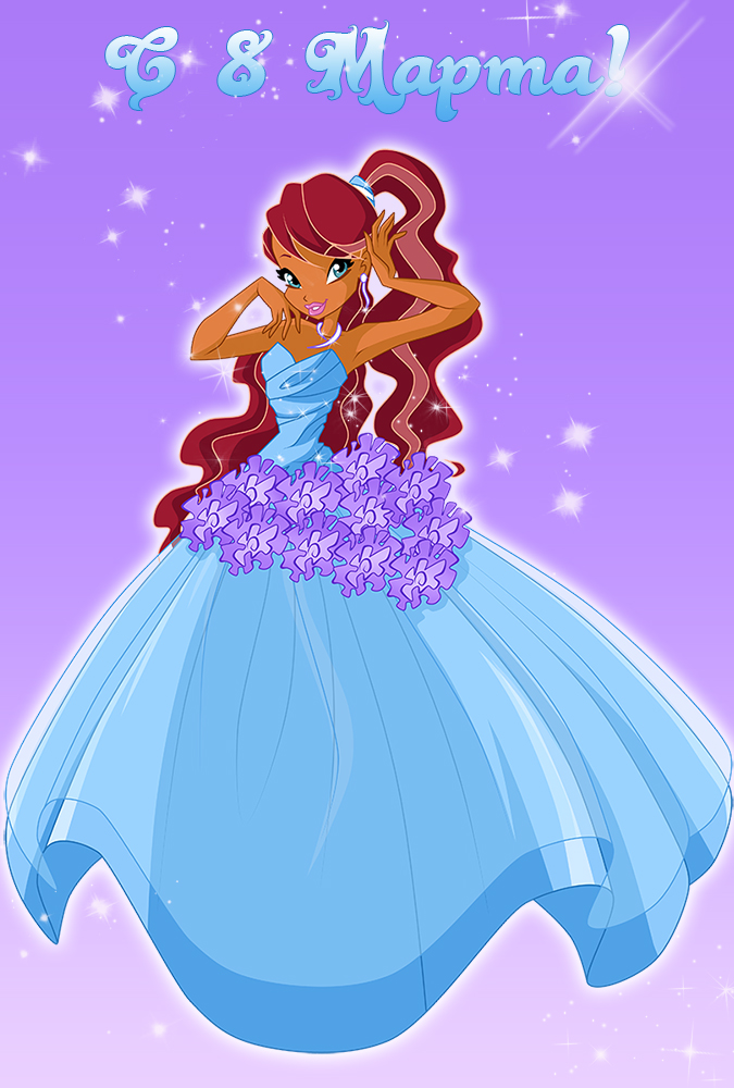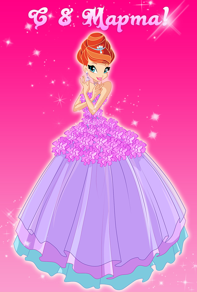 Открытки на 8 Марта с Винкс в бальных платьях 5го сезона