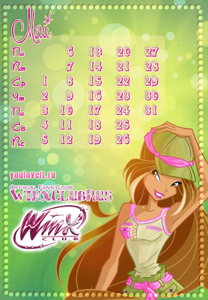 Календарь на май 2013 года с Флорой в стиле Сафари Винкс