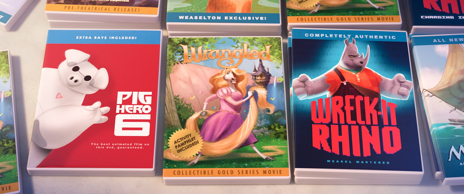 Начнем с самых заметных, которые вы наверняка успели увидеть, с обложек пиратских фильмов Дюка. В них легко можно узнать персонажей уже вышедших мультфильмов (Город Героев, Ральф, Запутанная история):