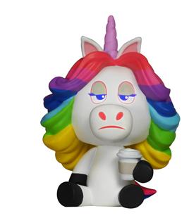 Но вот один новый, не скрытый персонаж на коробке есть. Это единорог с радужной гривой, чем-то недовольным (угрюмым) и невозмутимым лицом и с чашкой кофе в руке. Имени этого персонажа мы пока не знаем.