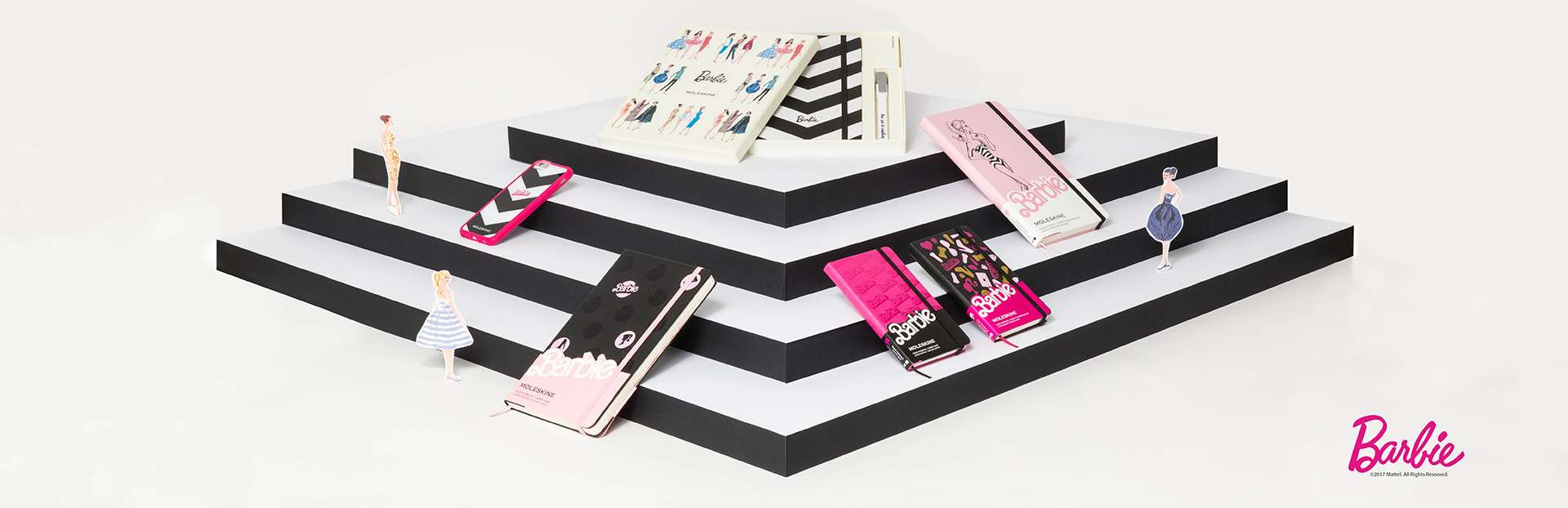 Опираясь на общие ценности, творческий и идейный потенциал, а также с целью взаимовыгодного сотрудничества Moleskine запускает новую лимитированную коллекцию, в которую входят 4 записные книжки «Barbie», коробка для коллекционеров «Barbie» с записной книжкой и ручкой в комплекте, а также чехол для телефона с изображением культовой куклы.