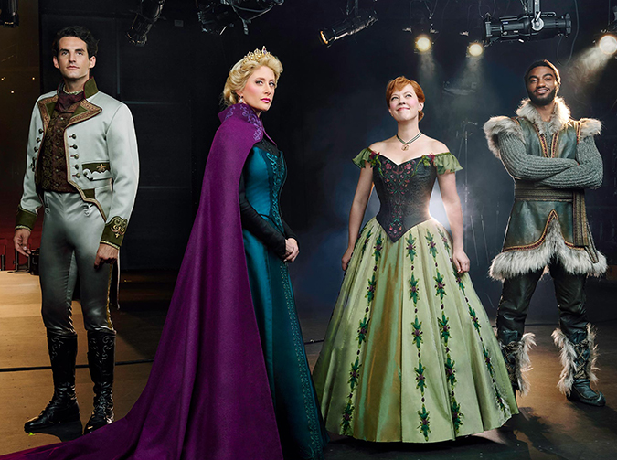 Знакомься с главной четверкой актерского состава: Джон Риддл (Ханс), Кейсси Леви (Эльза), Патти Муррин (Анна), Джелани Алладин (Кристофф).