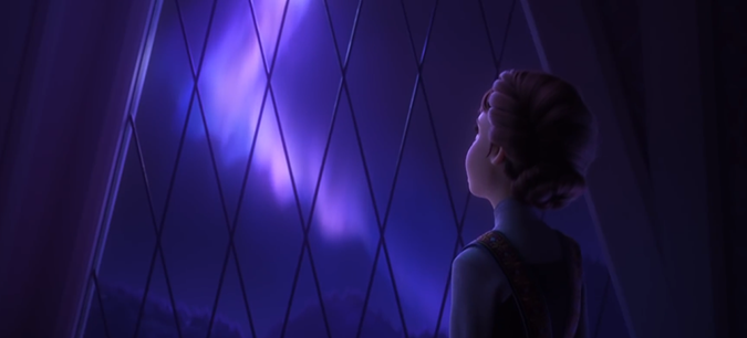 Мы узнаем откуда у Эльзы магия и нас ждут воспоминания и сцены с родителями Эльзы и Анны. В этом кадре Эльза общается с мамой и это как раз очень важный момент, которым интересовались зрители первого мультфильма. Как мама поддерживала Эльзу? Отношения с папой мы видели, с мамой еще нет.