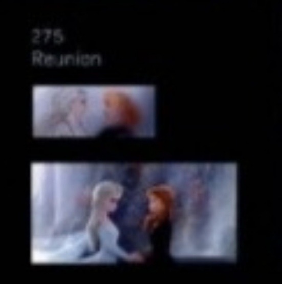 На первой картинке Анна держит в объятиях судя по всему тающего Олафа. Видимо в какой-то мере Эльза должна "погибнуть", а вместе с ней начнет исчезать и её творение, но потом она переродиться в пятый элемент стихий и нас ждет сцена со второй картинки.