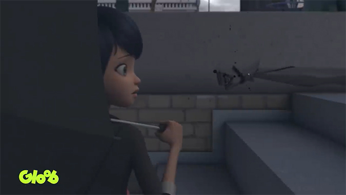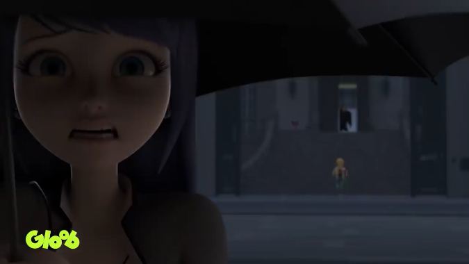 2. Адриан бежит к Маринетт, плачущей под дождем, но в процессе перевоплощается в кота и спасает её от акумы?