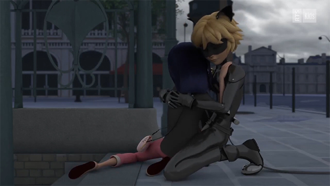 Кот Блан не переставая называет Леди Баг по имени - Маринетт, а заодно сообщает что это их любовь погубила этот город