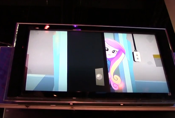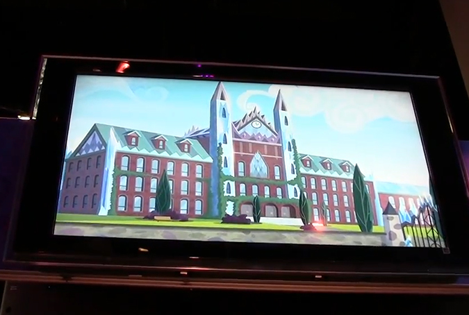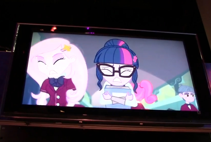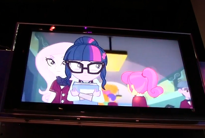 У этого трейлера нет звука, он демонтировался на экранах в павильоне Хасбро, посвященном товарам с Девушками Эквестрии. Но благодаря этому видео мы можем увидеть новые кадры. А самое главное наконец-то увидеть эквестринскую версию принцессы Каденс.