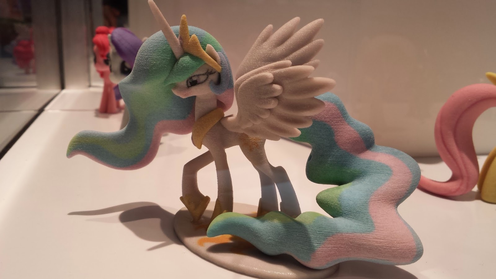 Например, эти замечательные фигурки пони, распечатанные на 3D принтере. Создает их компания SuperFanArt.