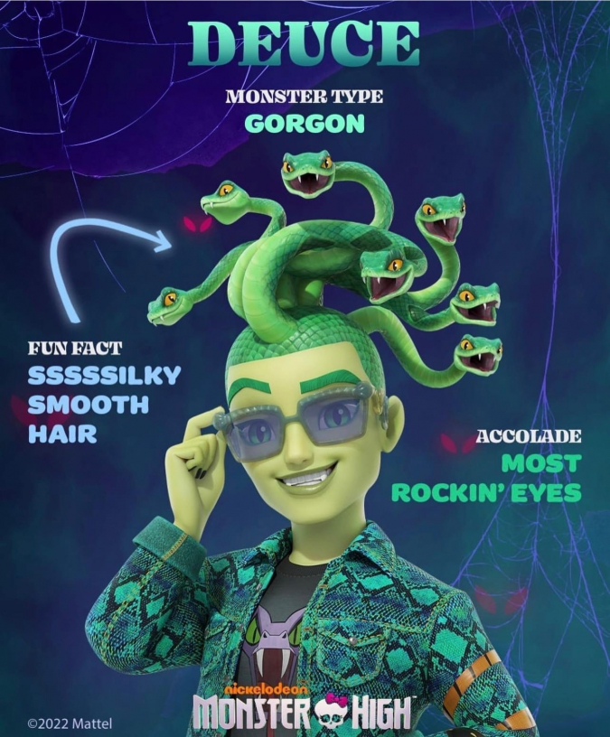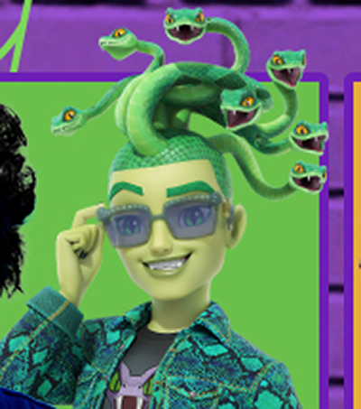 Тони Револори в роли Дьюса Горгона - сын Медузы и Лиры, Дьюс часто попадает под влияние змей, которые живут у него на голове и доставляют ему неприятности.
