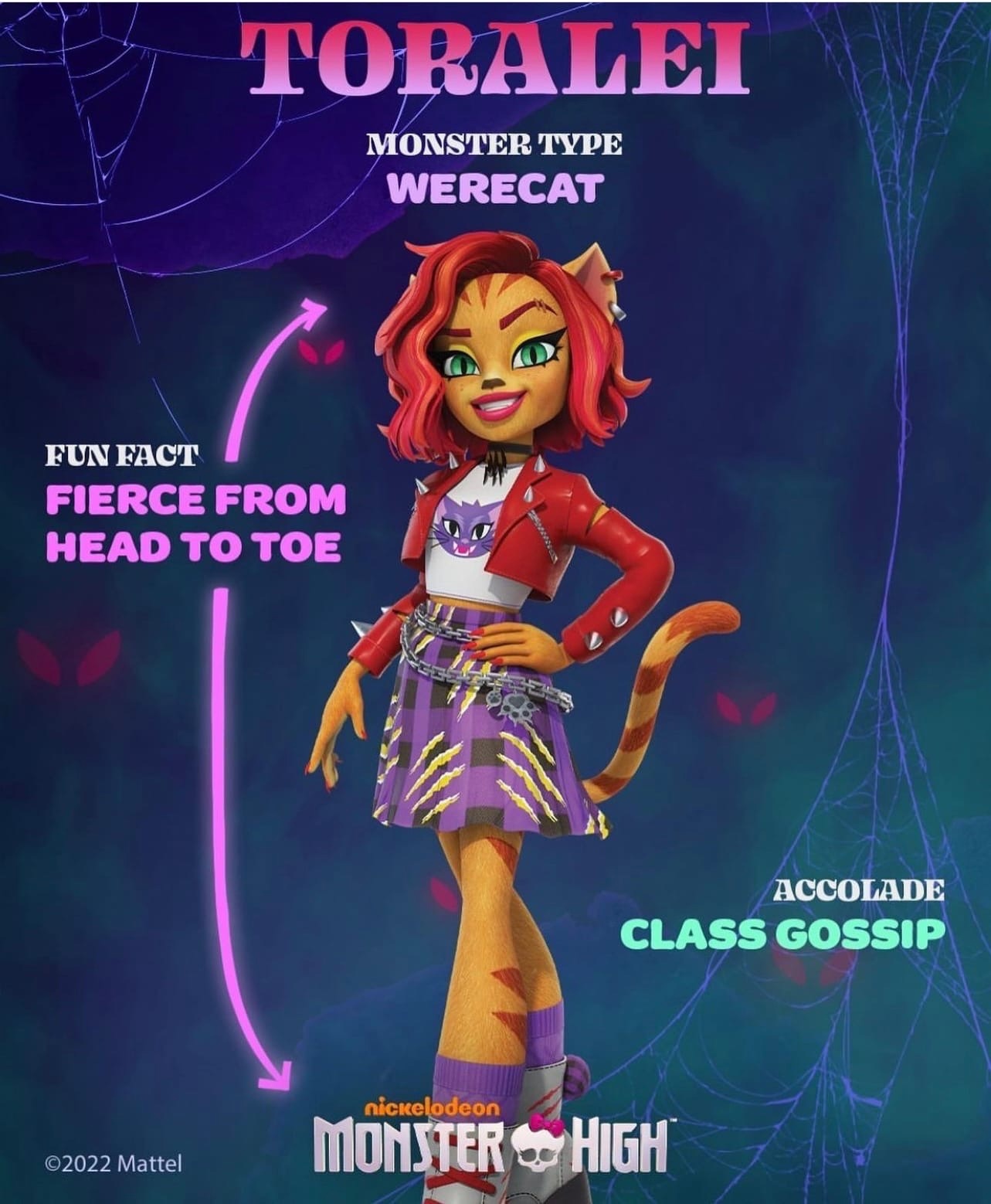Алекса Кан в роли Торалей Страйп - происходящая из элитной семьи монстров, Торалей - кошка-оборотень и "плохая девочка" в школе Монстров. Старомодная и храбрая, Торалей предана своему делу - сохранению общества монстров.